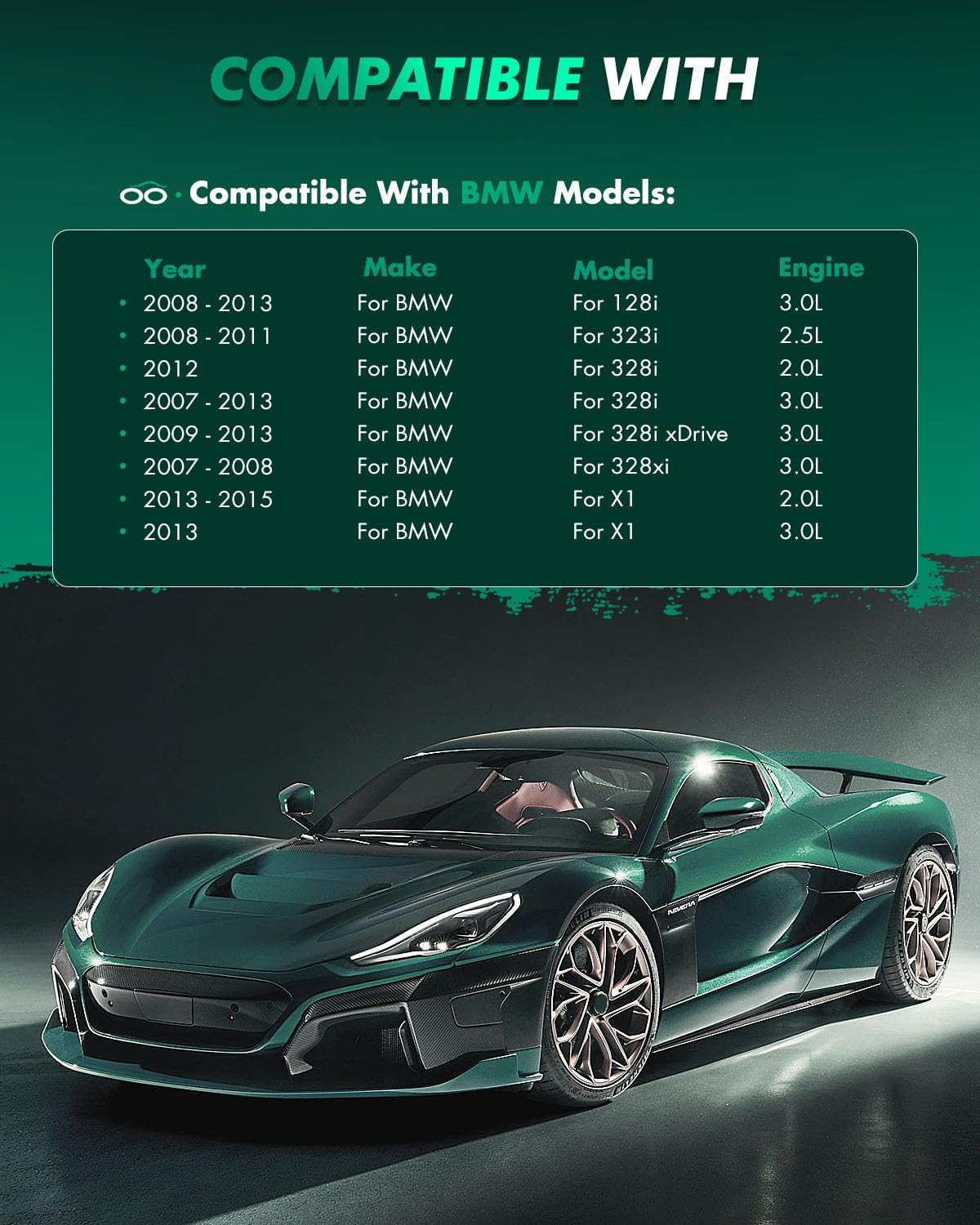 Features: ?Low Dust Braking?Quiet Operation?Increased Brake Power?Long Service Life?Easy InstallationSPECIFICATIONS: ?Placement on Vehicle: Rear Left Right?Pad Compound: Semi-Metal, Semi-Metallic, and Organic FormulasOEM PART NUMBER(S): 4 x Rear Brake Pads - D1267-7286Package contains: 4 x Brake PadsFitment: For BMW 128i Base Convertible 2-Door 2008-2013For BMW 128i Base Coupe 2-Door 2008-2013For BMW 128i M Sport Coupe 2-Door 2013For BMW 323i Base Sedan 4-Door 2008-2011For BMW 328i Base Convertible 2-Door 2007-2013For BMW 328i Base Coupe 2-Door 2007-2013For BMW 328i Base Sedan 4-Door 2007-2013For BMW 328i Base Wagon 4-Door 2007-2012For BMW 328i Luxury Sedan 4-Door 2012-2013For BMW 328i Modern Sedan 4-Door 2012-2013For BMW 328i Sport Sedan 4-Door 2012-2013For BMW 328i xDrive Base Coupe 2-Door 2009-2013For BMW 328i xDrive Base Sedan 4-Door 2009-2011 2013 For BMW 328i xDrive Base Wagon 4-Door 2009-2012For BMW 328xi Base Coupe 2-Door 2007-2008For BMW 328xi Base Sedan 4-Door 2007-2008For BMW 328xi Base Wagon 4-Door 2007-2008For BMW X1 sDrive28i Sport Utility 4-Door 2013-2015For BMW X1 xDrive28i Sport Utility 4-Door 2013-2015