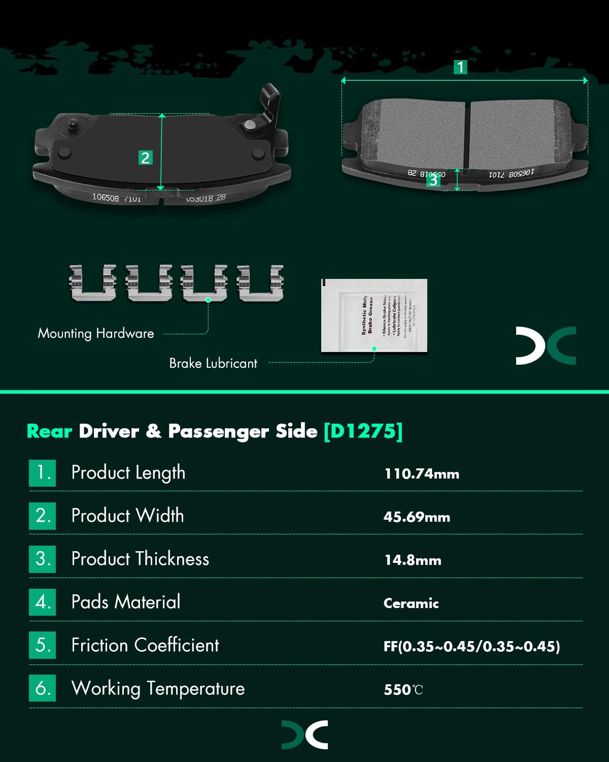 Scitoo D1275 Rear Ceramic Brake Pads Sets Fit For Chevy Captiva Sport 12-15,For Chevy Equinox 07-17,For Gmc Terrain 10-17,For Po