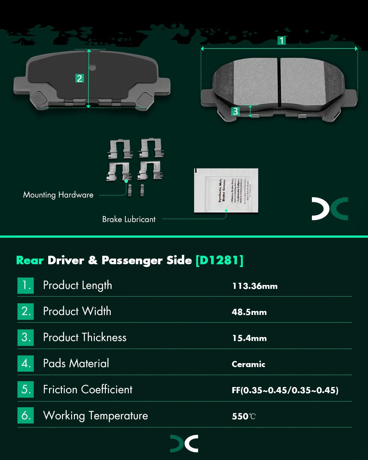 Scitoo D1281 Rear Ceramic Brake Pads Sets Fit For Acura Mdx 2007-2013,For Acura Zdx 2010-2013,For Honda Odyssey 2011-2017,For Ho