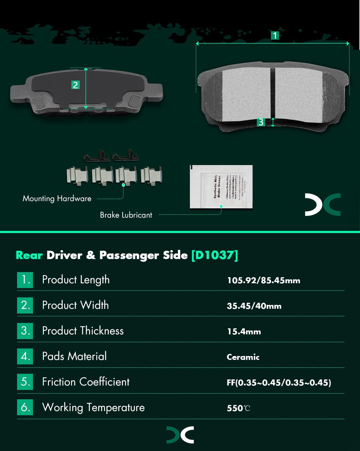 Scitoo D1285 D1037 Front Rear Ceramic Brake Pads Sets Fit For Chrysler 200 / Sebring,For Dodge Avenger 2008-2014,For Dodge Calib
