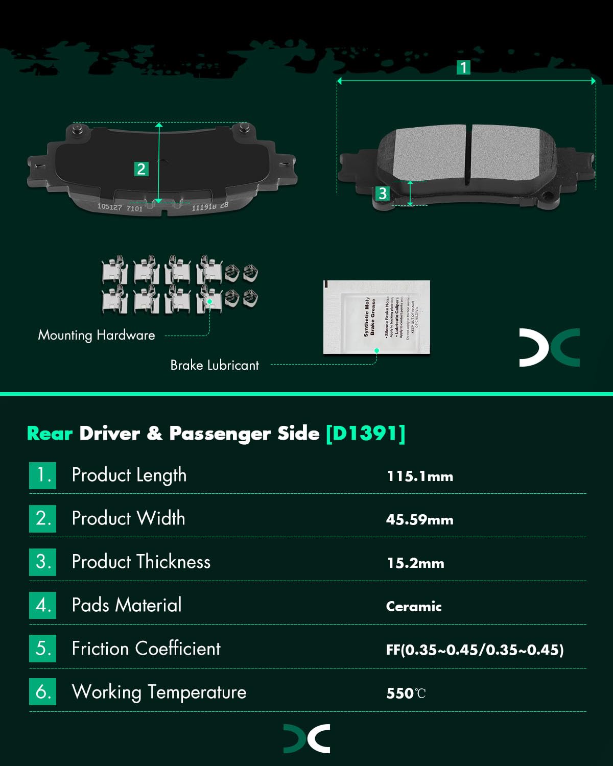 Scitoo D1324 D1391 Front Rear Ceramic Brake Pads Sets Fit For Lexus Rx350 2010-2015,For Toyota For Highlander 2014-2018,For Toyo