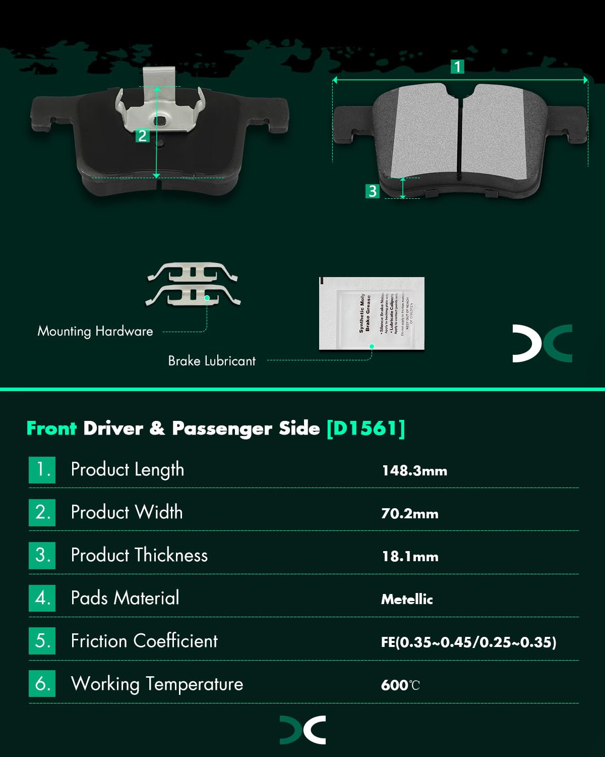 Scitoo D1561 Metallic Brake Pads Sets Front W/Hardware Replacement For Bmw 2011 2012 2013 2014 2015 2016 2017 2018 2019 2020 202