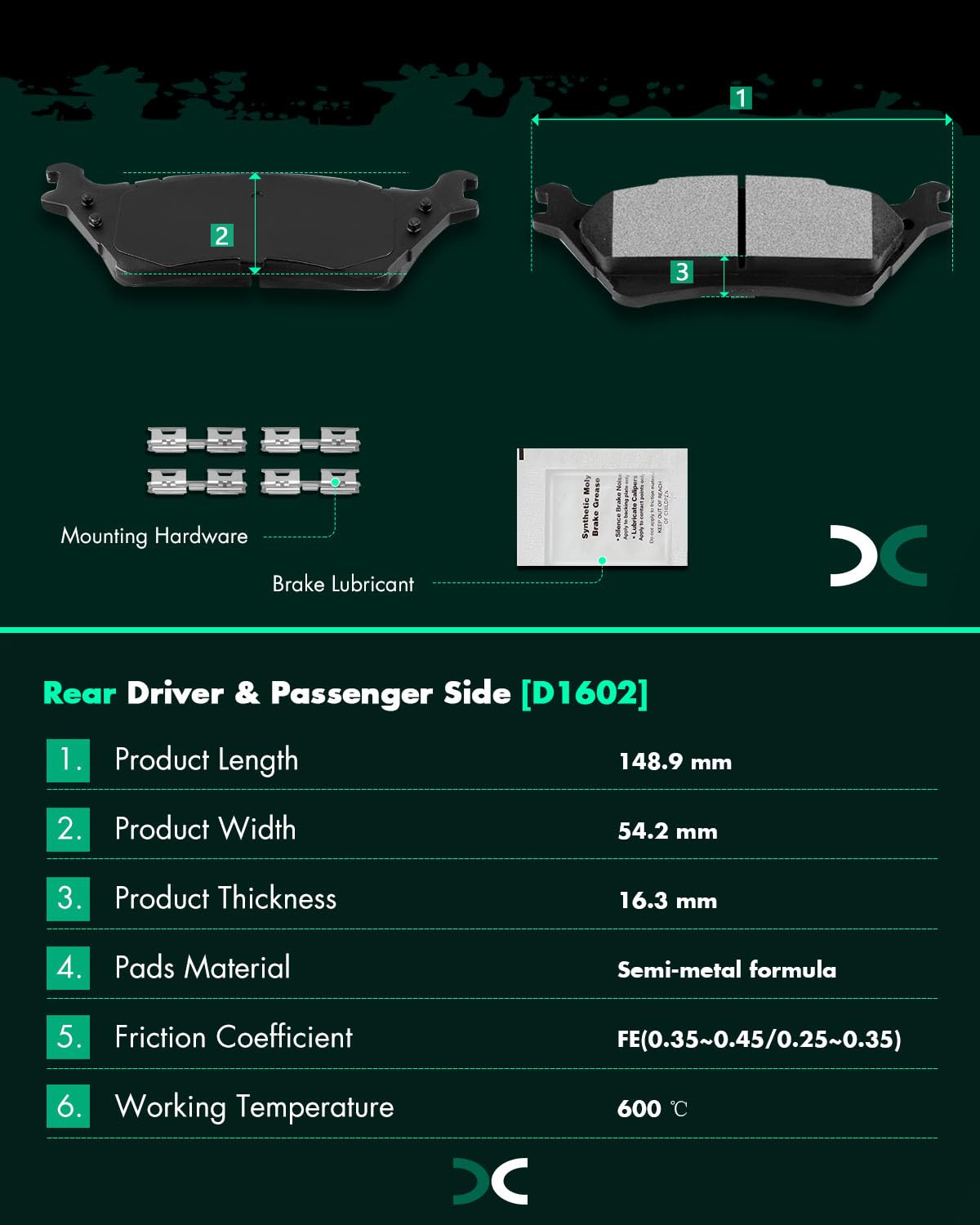 Scitoo D1602 Rear Semi-Metal Brake Pads Sets Fit For Ford For F-150 2012-2020