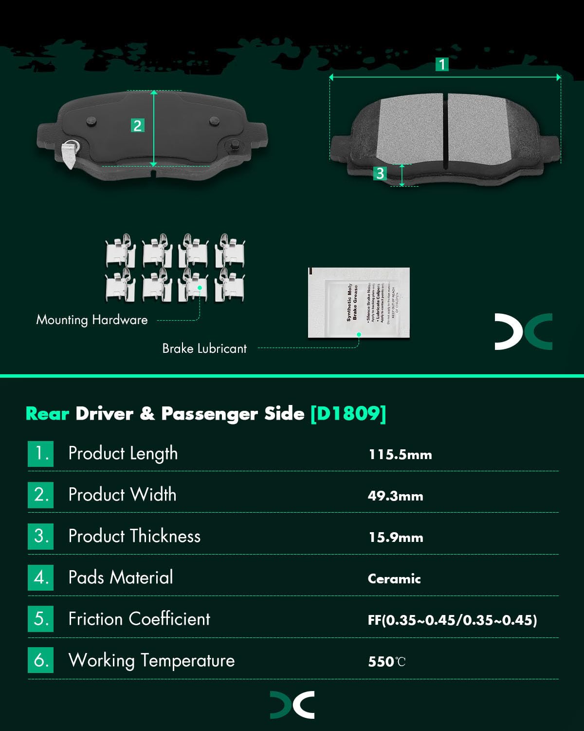Scitoo D1811 D1809 Front Rear Ceramic Brake Pads Sets Fit For Fiat 500X 2016-2018,For Jeep Compass 2016-2020,For Jeep Renegade 2