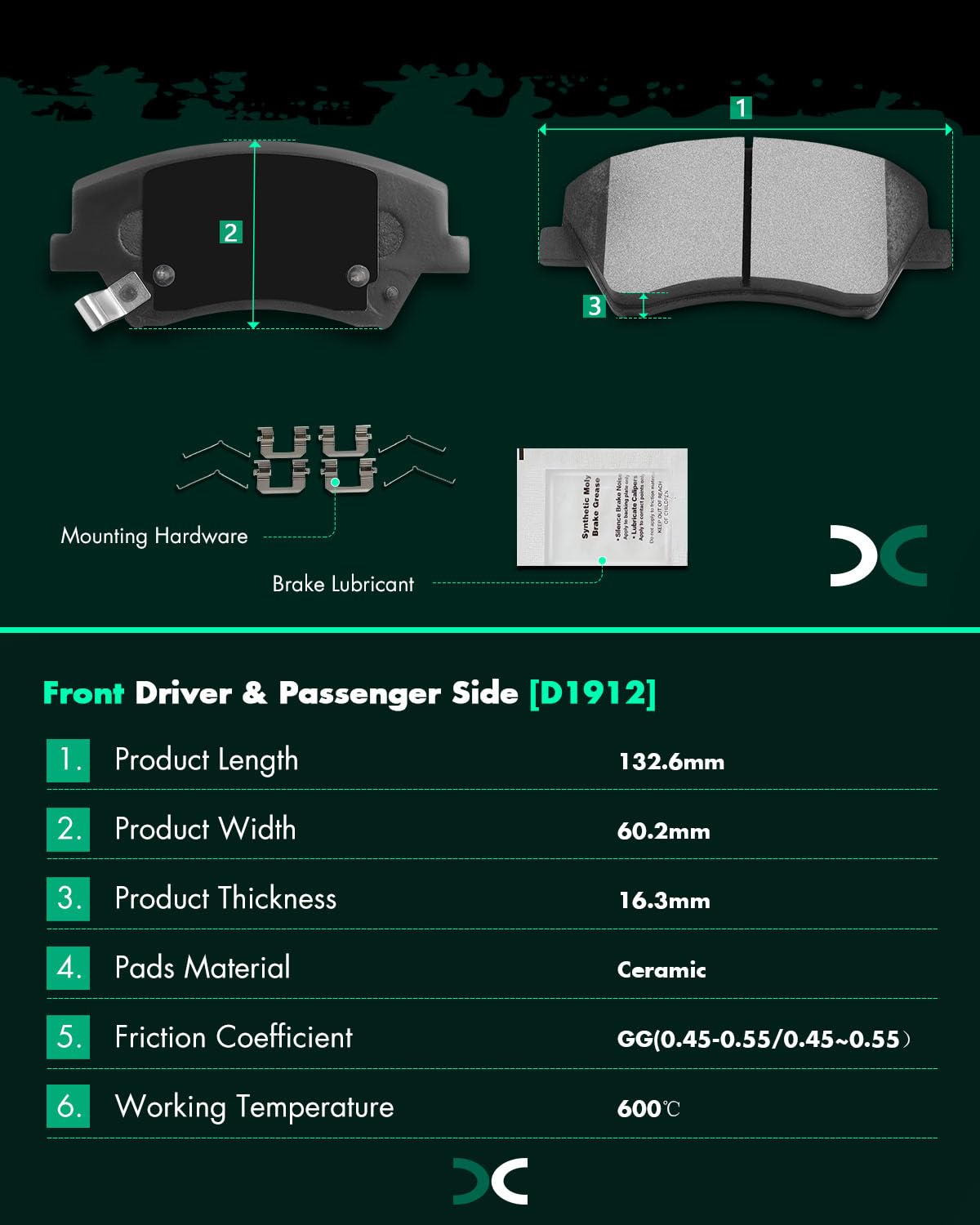 Scitoo D1912 Ceramic Brake Pads Sets Front W/Hardware Replacement For Hyundai For Elantra 2017-2020,For Hyundai For Ioniq 2017-2