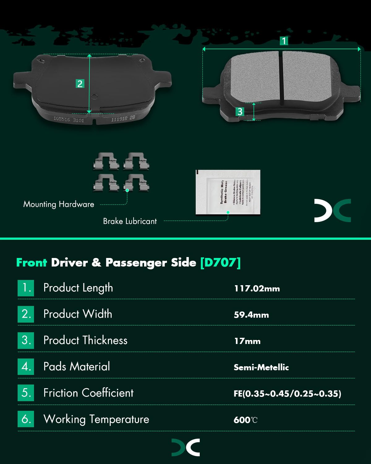 Scitoo D707 Front Semi-Metallic Brake Pads Sets Fit For Lexus Es300 1997-2001,For Lexus Rx300 1999-2001,For Toyota Avalon 1998-2