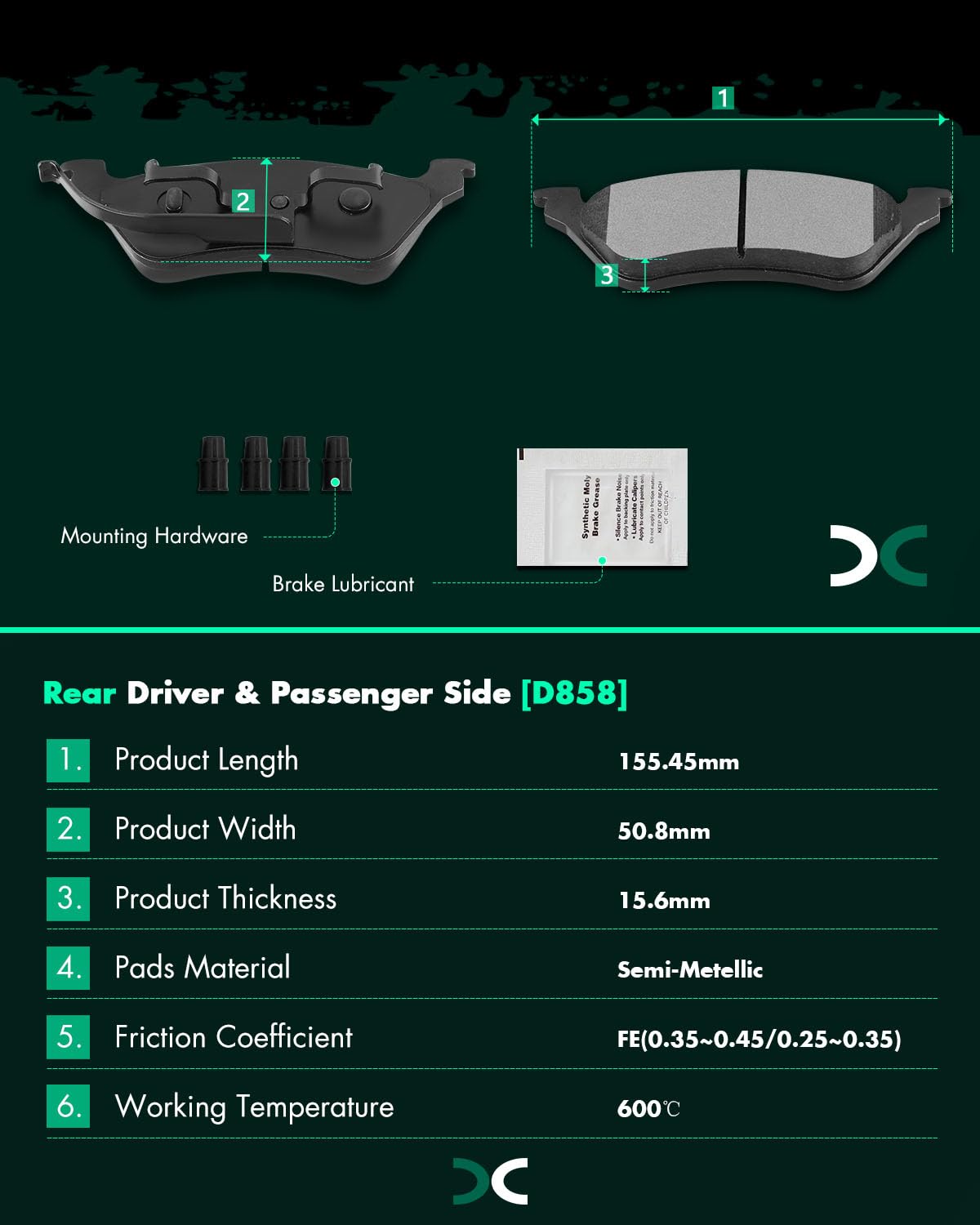 Scitoo D858 Rear Ceramic Brake Pads Sets Fit For Chrysler Town & Country 2001-2007,For Dodge Caravan 2001-2007,For Dodge Grand C