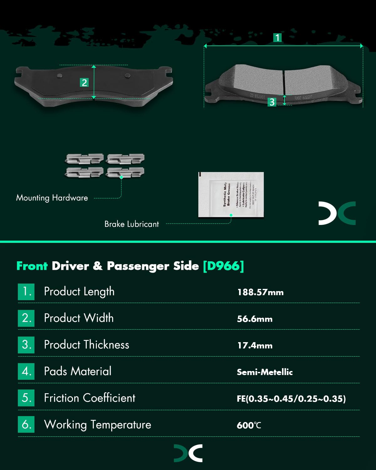 Scitoo D966 Semi-Metal Brake Pads Kits Front Replacement For Dodge For Durango 2003-2006,For Dodge Ram 1500 2002-2005,For Dodge