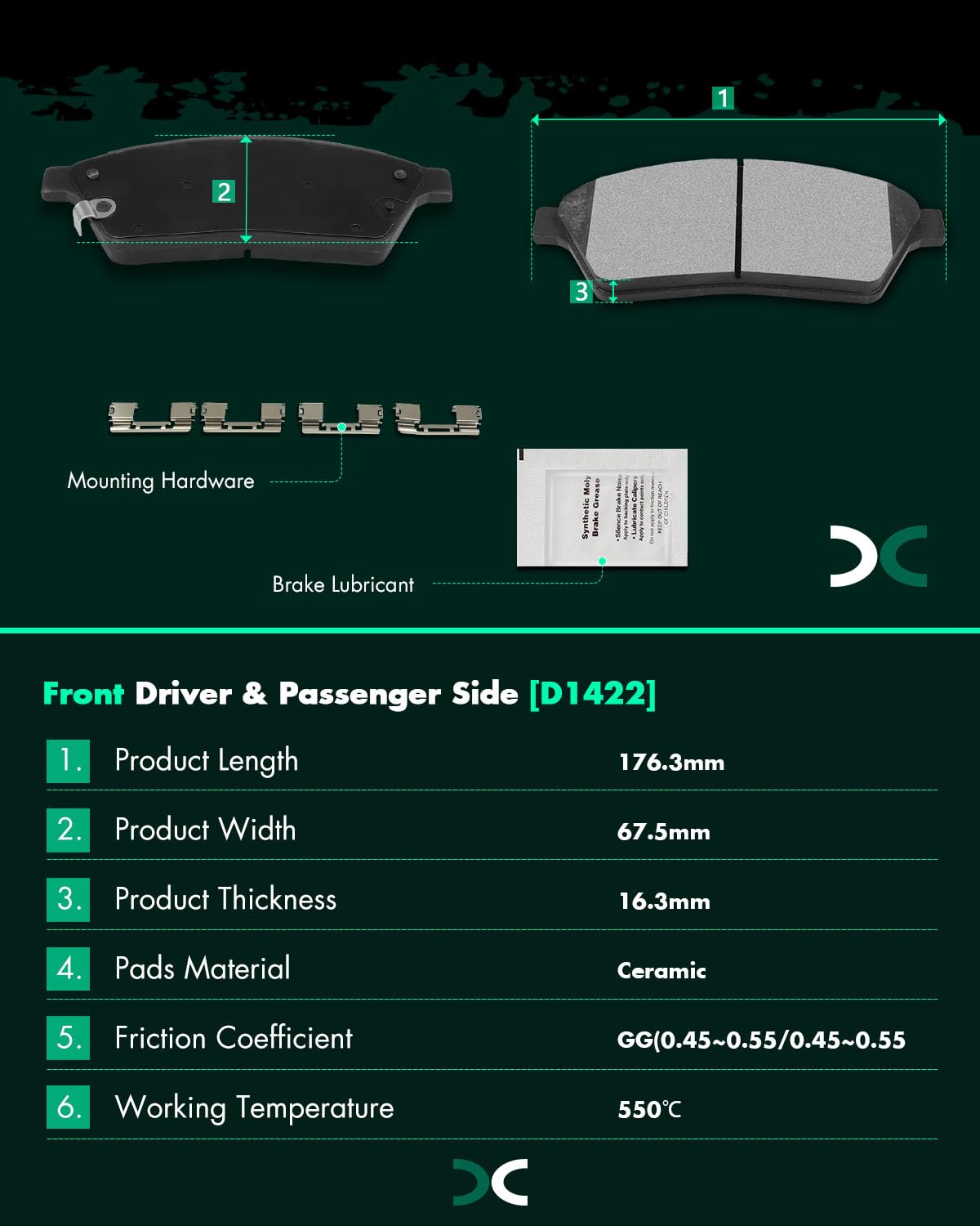 Specifications: Placement on Vehicle: Front Left & RightPad Compound: Ceramic FormulaOEM PART NUMBER(S): 4 X Front Brake Pads - D1422-8537Package Contains: 4PCS x Brake PadsFit For: For Cadillac For SRX Base Sport Utility 4-Door 2010-2016For Cadillac For SRX Luxury Sport Utility 4-Door 2010-2016For Cadillac For SRX Performance Sport Utility 4-Door 2010-2016For Cadillac For SRX Premium Sport Utility 4-Door 2010-2016For Saab For 9-4X Aero Sport Utility 4-Door 2011For Saab For 9-4X Base Sport Utility 4-Door 2011For Saab For 9-4X Premium Sport Utility 4-Door 2011