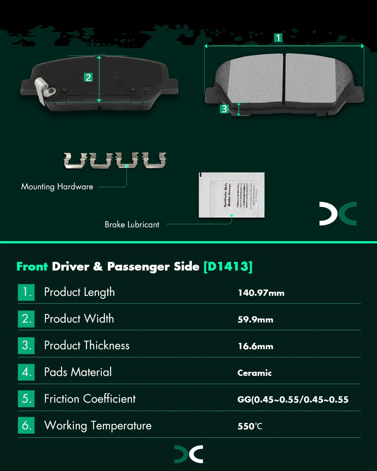 Specifications: Placement on Vehicle: Front Left & RightPad Compound: Ceramic FormulaOEM PART NUMBER(S): 4 X Front Brake Pads - D1413-8527Package Contains: 4PCS x Brake PadsFit For: For Hyundai For Genesis Coupe 2.0T Coupe 2-Door 2010-2014For Hyundai For Genesis Coupe 2.0T GT Coupe 2-Door 2010-2012For Hyundai For Genesis Coupe 2.0T Premium Coupe 2-Door 2010-2014For Hyundai For Genesis Coupe 2.0T R-Spec Coupe 2-Door 2010-2014For Hyundai For Genesis Coupe 2.0T Track Coupe 2-Door 2010For Hyundai For Genesis Coupe 3.8 Coupe 2-Door 2010 2012 2015-2016For Hyundai For Genesis Coupe 3.8 Grand Touring Coupe 2-Door 2010-2014For Hyundai For Genesis Coupe 3.8 GT Coupe 2-Door 2010-2013 2015-2016For Hyundai For Genesis Coupe 3.8 R-Spec Coupe 2-Door 2011-2013 2015-2016For Hyundai For Genesis Coupe 3.8 Track Coupe 2-Door 2010-2013For Hyundai For Genesis Coupe 3.8 Ultimate Coupe 2-Door 2015-2016For Hyundai For Veloster Rally Edition Hatchback 3-Door 2016For Hyundai For Veloster Turbo Hatchback 3-Door 2013-2016For Hyundai For Veloster Turbo R-Spec Hatchback 3-Door 2014-2016For Kia For Optima EX Sedan 4-Door 2011-2013For Kia For Optima Limited Sedan 4-Door 2014-2015For Kia For Optima SX Sedan 4-Door 2011-2013For Kia For Optima SX Turbo Sedan 4-Door 2014-2015For Kia For Optima SXL Sedan 4-Door 2013For Kia For Optima SXL Turbo Sedan 4-Door 2014-2015
