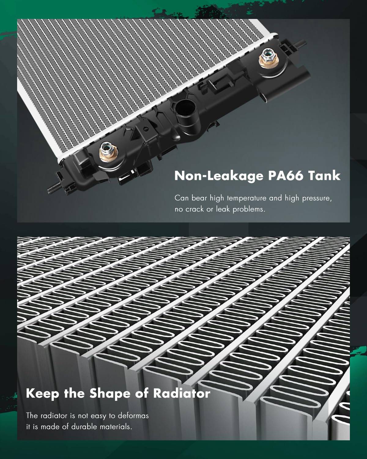 Fit For - Replacement for 2011-2015 for Chevrolet for Cruze 1.4L 2011-2015 for Chevrolet for Cruze 1.8L 2016 for Chevrolet for Cruze Limited 1.4L 2016 for Chevrolet for Cruze Limited 1.8L | OEM Fit For - Radiator fit Radiator 13197, 2166, 13311079, 13311079 | Easy to Install - OE design to ensure exact fit, form and function for an easy drop-in installation. | Feature - Built with high density multi-Lowered fins for maximum cooling efficiency. | Note - Please confirm the compatible vehicles before ordering,thank you.