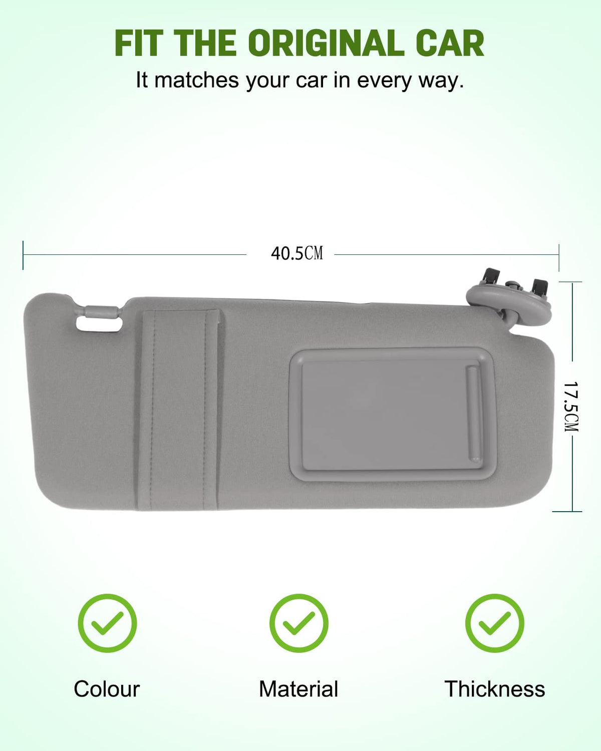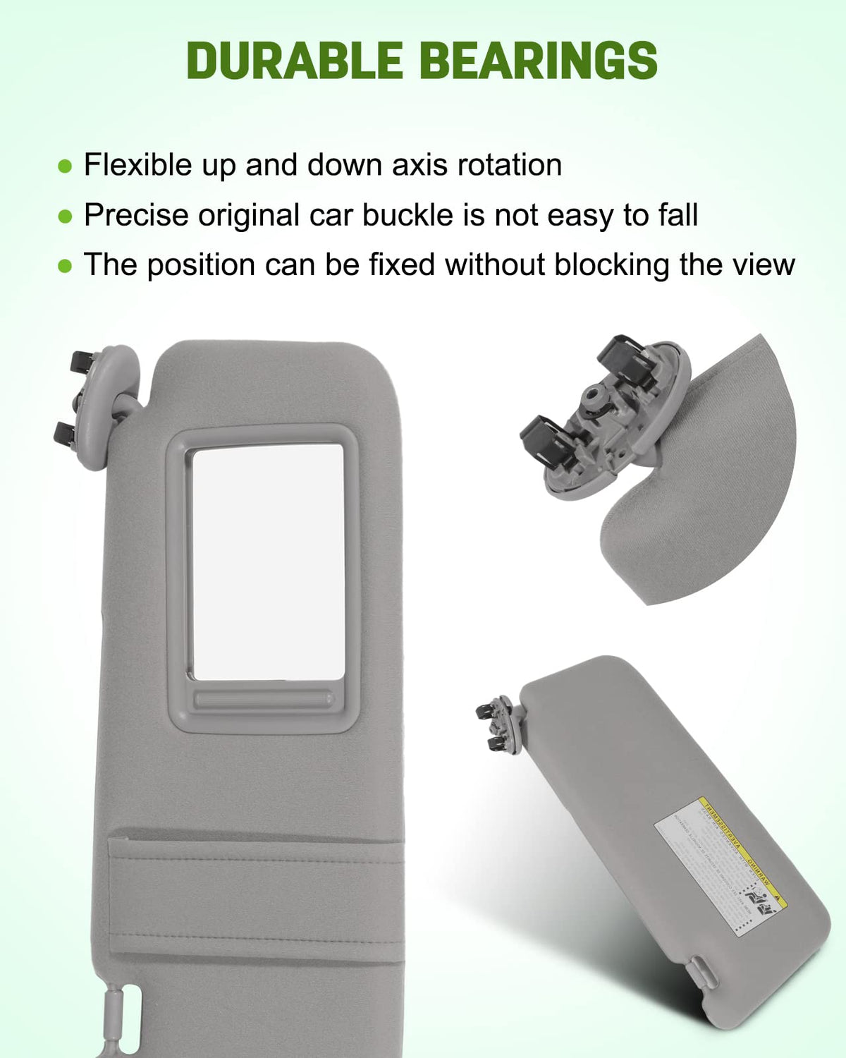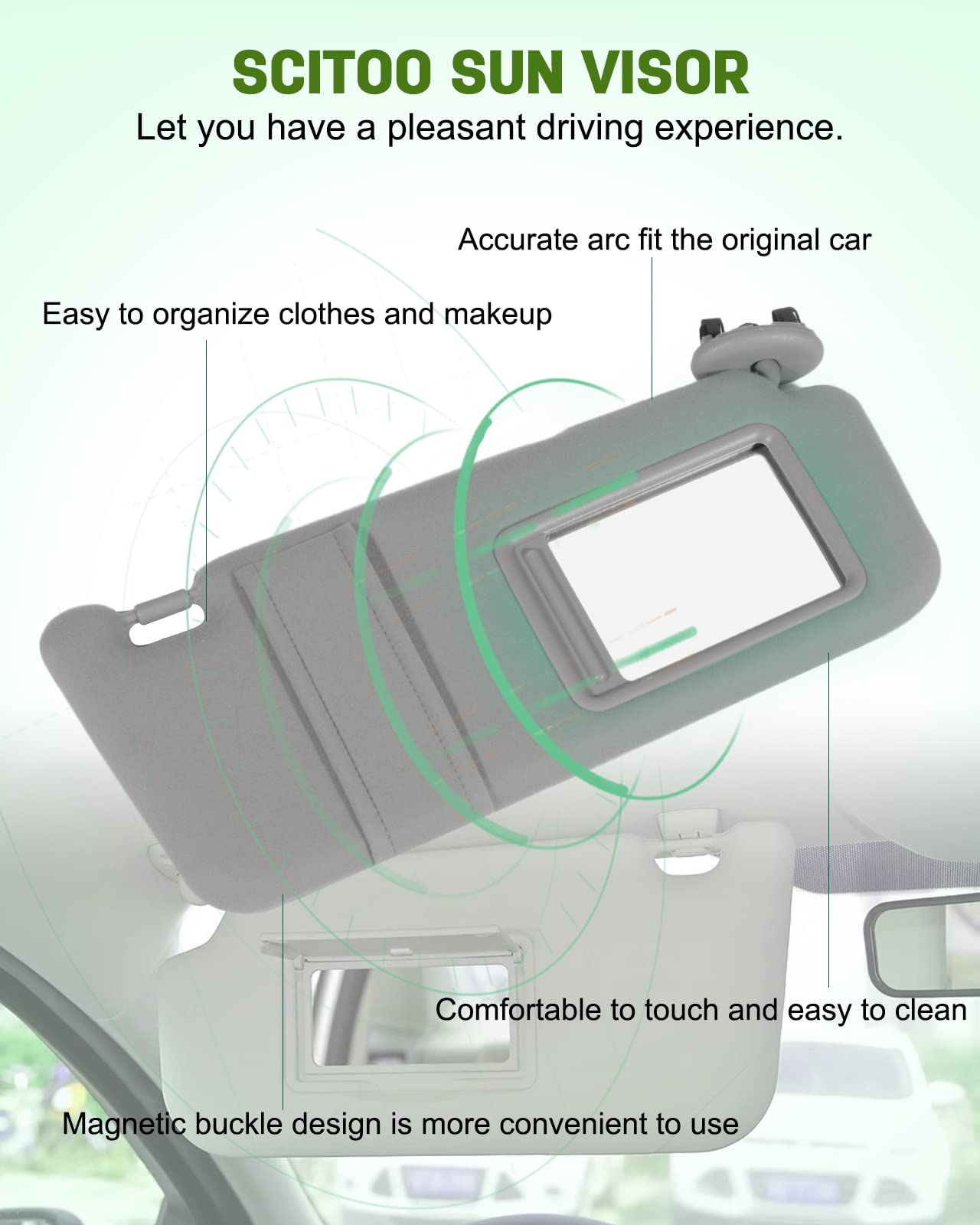 Detail:SCITOO Car Sun Visor for 2006-2011 for Toyota for CamryFeatures:- Brand:SCITOO - Type:Car Sun Visor- Placement on Vehicle:Front,Right Passenger Side- Color:GrayCompatibility:2006 for Toyota for Camry2007 for Toyota for Camry2008 for Toyota for Camry2009 for Toyota for Camry2010 for Toyota for Camry2011 for Toyota for CamryPackage Include:1 x Car Sun Visor (Passenger Side)