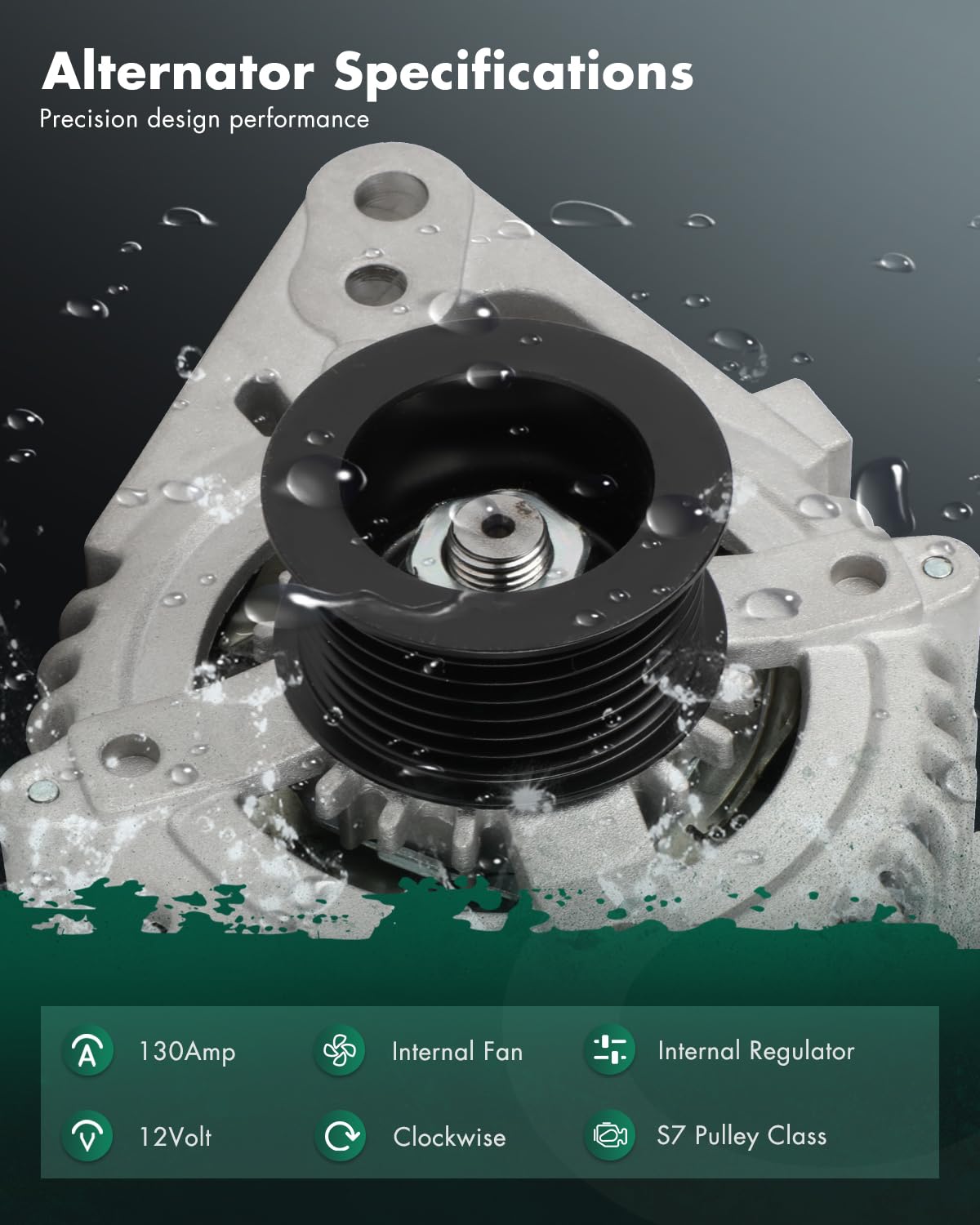 ?Alternator Fitment?- Automotive new alternator replacement for Toyota 4Runner 2003-2009 V6 4.0L, for Tacoma 2010-2015 V6 4.0L | ?High-Performance Specifications? - Engineered with Voltage: 12V; Amperage: 130Amp; Rotation: CW (Clockwise); Regulator: IR (Internal Regulator) ; Fan: IF (Internal Fan); Grooves: S7 Pulley Class; Condition: New, high output alternator is compact and lightweight, fully compatible with the electronic system of your vehicle, this automotive replacement alternator delivers reliable power for your car, it