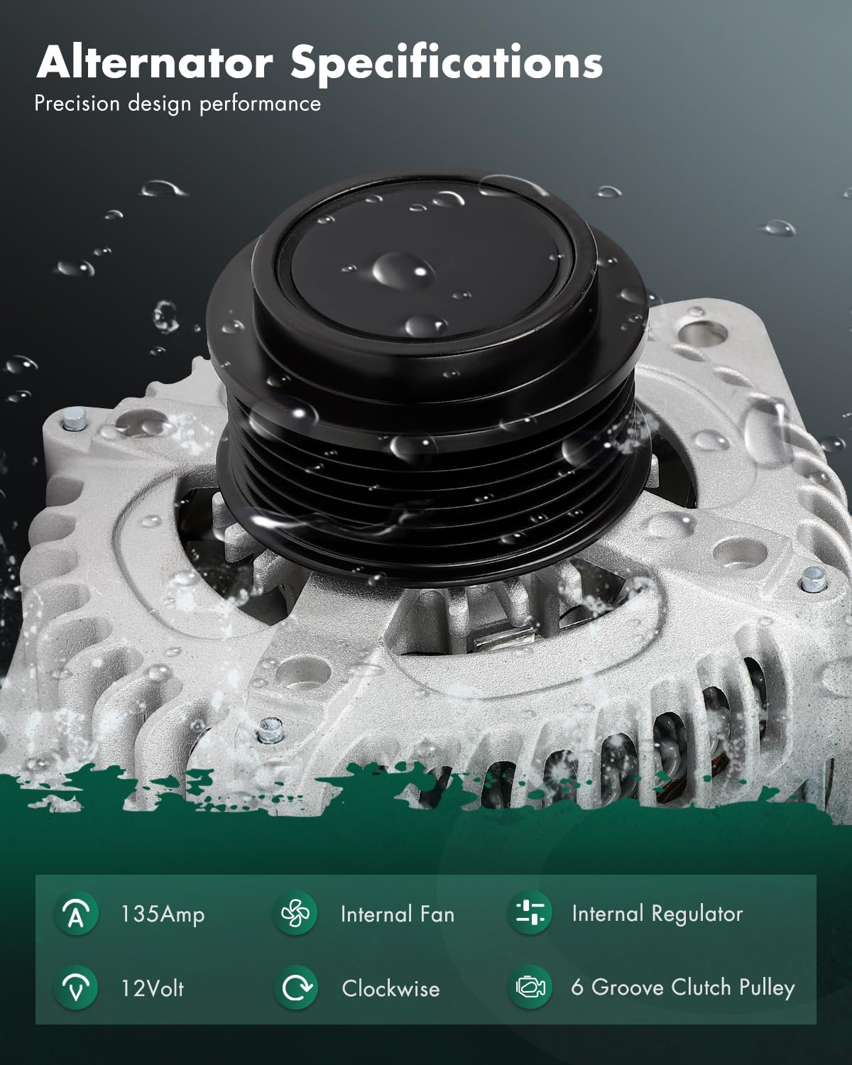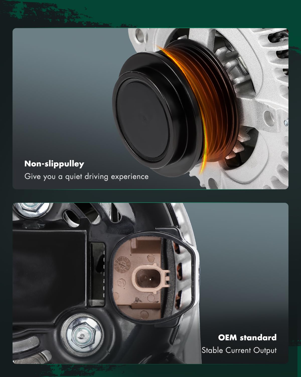 ?Alternator Fitment?- Automotive new alternator replacement for Acura for RDX 3.5L 2013,for Acura for RDX 3.5L 2014,for Acura for RDX 3.5L 2015 | ?Alternators Specifications?- Voltage: 12V; Amperage: 135A; Rotation: CW(Clockwise); Grooves: 6 Groove Clutch Pulley; Condition: New, high output alternator is compact and lightweight, fully compatible with the electronic system of your vehicle | ?Car Alternator Reference Number?- Direct OEM replacement for your malfunctioning part, OE number : 31100-R53-A01 104210-1890 11672 11672 104210-1890 A0282A0215 DRA1273 4801834AB P04801834AB 31100R53A01 421000-7030 421000-7031 4210007030 4210007031 4210007030 | ?Easy Installation?- (1) Be sure to disconnect the negative electrode of the battery; (2) When replacing, pay attention to the appropriate tension of the transmission belt: if too loose, it may slip and cause insufficient power generation; If too tight, it can easily damage the belt and alternator bearings; (3) When replacing, pay attention to tightening all screws. If you have any problems during use, then get in touch with us, we will supply you with professional technical support | ?Note?SCITOO Auto supply alternator for most cars, SUVs, trucks and trailers. Please select your vehicle (year/make/model/trim) in the top left corner of the page to confirm compatibility or refer to the vehicle information in the description
