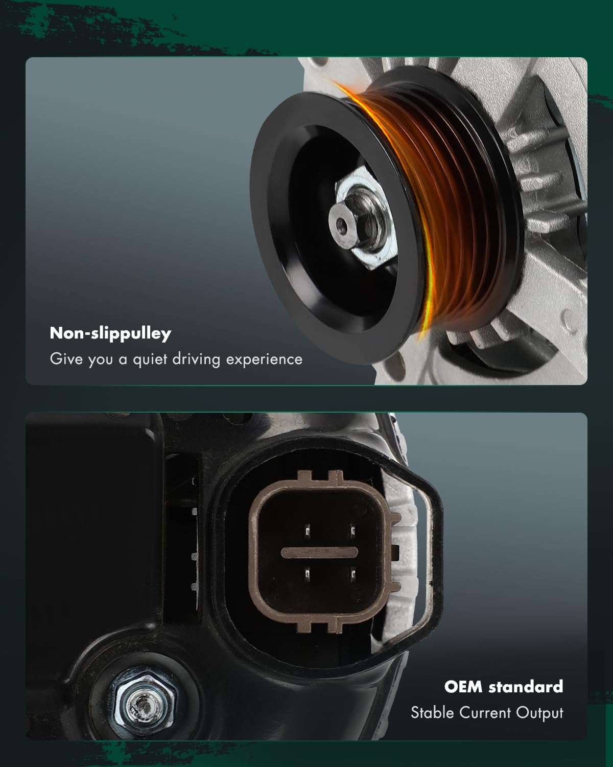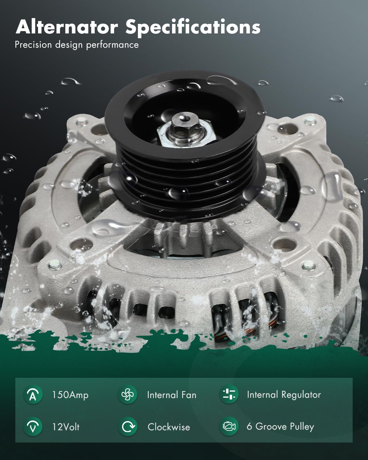?Alternator Fitment?- Automotive new alternator replacement for Hyundai for Azera 2012-2017, for Genesis 2012-2012 V6 3.8L, Santa Fe 2013-2018 V6 3.3L, Santa Fe XL 2013-2019; for Kia for Cadenza 2014-2016, K900 2016-2017 V6 3.8L, for Sedona 2011-2012/2014-2018, for Sorento 2011 V6 3.5L, for Sorento 2015-2018 V6 3.3L(for Kia for Sorento does not fits V6 2.4L) | ?Alternators Specifications?- Voltage: 12V; Amperage: 150A; Rotation: CW(Clockwise); Regulator: IR ; Fan: IF; Grooves: 6 Groove Pulley; Condition: New, high output alternator is compact and lightweight, fully compatible with the electronic system of your vehicle | ?Car Alternator Reference Number?- Direct OEM replacement for your malfunctioning part, OE number : 11686 104210-1800, 1042102870, 104210-2870, 373003C510, 37300-3C510, 373003C520, 37300-3C520, 1042101800 | ?Easy Installation?- (1) Be sure to disconnect the negative electrode of the battery; (2) When replacing, pay attention to the appropriate tension of the transmission belt: if too loose, it may slip and cause insufficient power generation; If too tight, it can easily damage the belt and alternator bearings; (3) When replacing, pay attention to tightening all screws. If you have any problems during use, then get in touch with us, we will supply you with professional technical support | ?Note?SCITOO Auto supply alternator for most cars, SUVs, trucks and trailers. Please select your vehicle (year/make/model/trim) in the top left corner of the page to confirm compatibility or refer to the vehicle information in the description