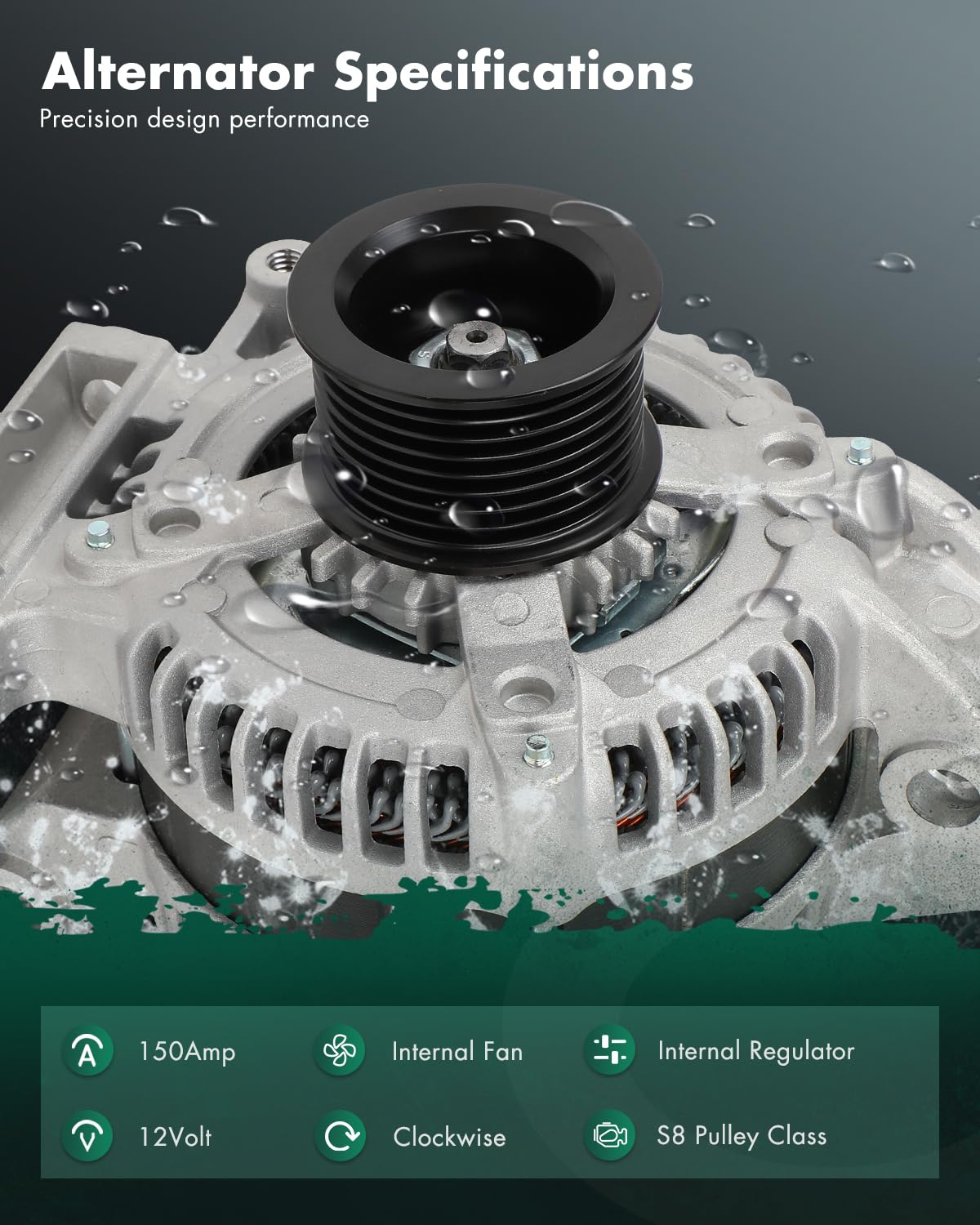 ?Alternator Fitment?- Automotive new alternator replacement for Toyota for Sequoia 2010-2012 V8 4.6L, for Sequoia 2008-2022 V8 5.7L, Tundra 2010-2019 V8 4.6L, Tundra 2007-2021 V8 5.7L; for Lexus GX460 2010-2013 V8 4.6L | ?Alternators Specifications?- Voltage: 12V; Amperage: 150A; Rotation: CW(Clockwise); Regulator: IR ; Fan: IF; Grooves: S8 Pulley Class; Condition: New, high output alternator is compact and lightweight, fully compatible with the electronic system of your vehicle | ?Car Alternator Reference Number?- Direct OEM replacement for your malfunctioning part, OE number : 11352 27060-0S020 104210-5090, 104210-5091 290-5397 AND0507 400-52393, 400-52393R, 400-52549R 334-2780 12818 213-8891 90-29-5709 11352A AL3336X 210-0697 11352N A-80347 | ?Easy Installation?- (1) Be sure to disconnect the negative electrode of the battery; (2) When replacing, pay attention to the appropriate tension of the transmission belt: if too loose, it may slip and cause insufficient power generation; If too tight, it can easily damage the belt and alternator bearings; (3) When replacing, pay attention to tightening all screws. If you have any problems during use, then get in touch with us, we will supply you with professional technical support | ?Note?SCITOO Auto supply alternator for most cars, SUVs, trucks and trailers. Please select your vehicle (year/make/model/trim) in the top left corner of the page to confirm compatibility or refer to the vehicle information in the description