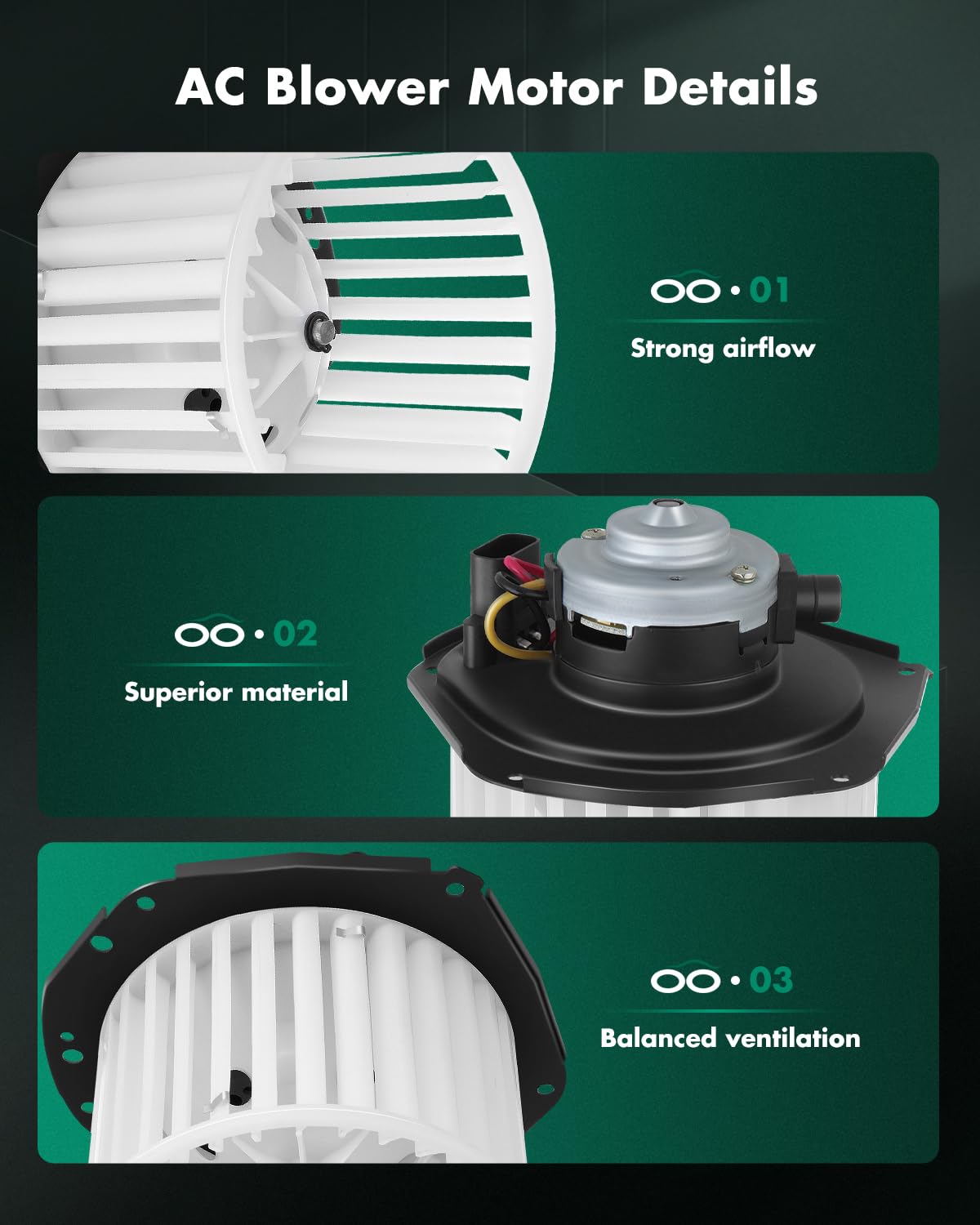 FITMENT: The Heater Blower Motor fit for 1988-90 for Buick Station Wagon /1996-05 for Chevy Astro /1995-97 for Chevy Blazer S10 /1989-92 for Chevy Camaro /1986-96 for Chevy Corvette /1994-03 for Chevy S10 Pickup /1995-97 for GMC Jimmy S-15 /1994-03 for GMC S-15 Sonoma /1996-05 for GMC Safari /1996-00 for Isuzu Hombre /1996-97 for Olds Bravada /1989-92 for Pontiac Firebird | OEM Replace Part Number: 700092, 19179474, 3010064, 15-81128, GM3126114,615-00456A, 615-00456B, 615-00510, 615-456A/B, 52460704 ( While this is not a genuine OEM part, it is a direct replacement ) | ADVANTAGE OF THE MOTOR: Wind power strong and No noise. Adopt new technology and excellent production equipment to make products more environmentally friendly and energy-saving. | FEATURE OF THE MOTOR: Permanently lubricated self-aligning bearings with long design life and reliable performance. This high quality blower motor is a new aftermarket replacement part built on the most stringent quality control standards. | PREFERRED MATERIAL: Superior materials which provide maximum strength and durability. Material of rotor punching plate is silicon steel sheet. Enameled wire is used copper enameled wire.