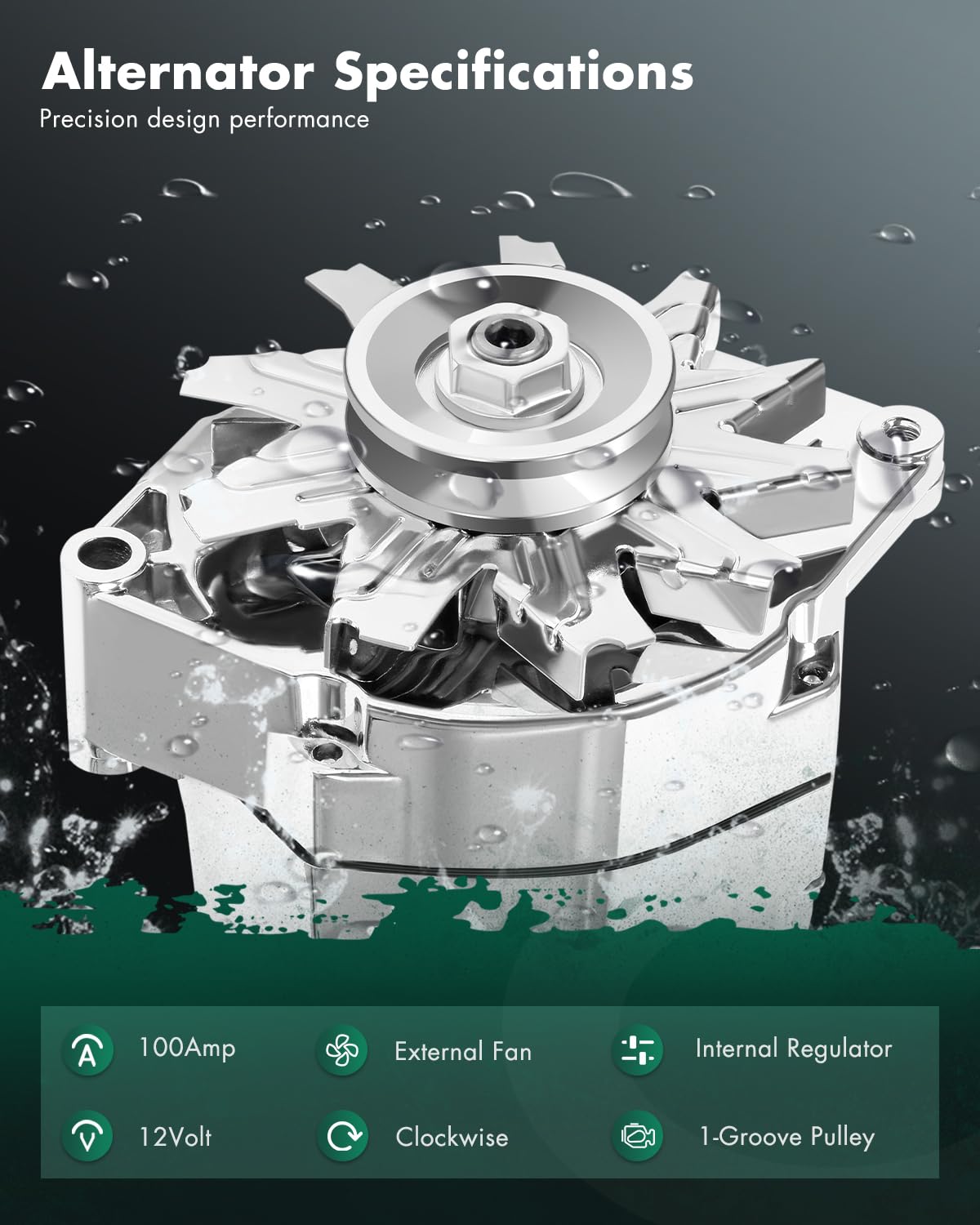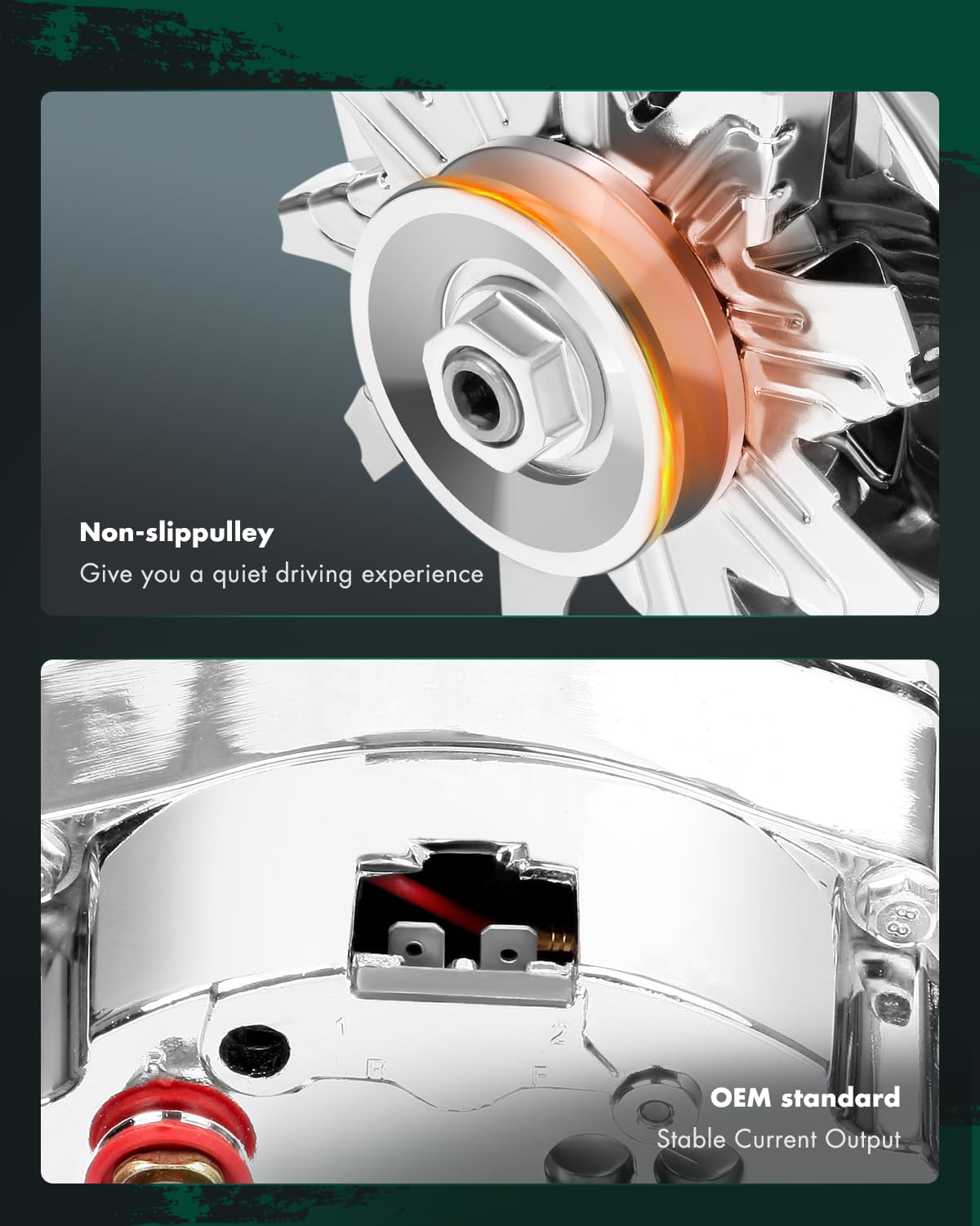 SCITOO New Alternator for 120Amp Chrome 3 Wire Self Exciting Street Rod GM 305 350 BBC SBC