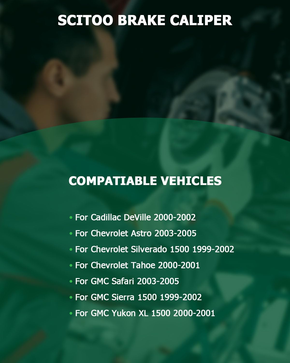 Specification: Placement on Vehicle: Rear Right (Passenger Side)Brake Calipers: Bracket: withInlet Port Size: M10 x 1.0Bleeder Port Size: M10 x 1.0Piston Size: 2.129inchBrake Piston Count: 1 PistonPiston Material: PhenolicCaliper Color: RedInterchange Part Number: 18-B4727Package Includes: 1 x Brake CaliperCompatible with: (For More Details, Please Check ''FITMENT'' in the Upper Left Corner)For Cadillac DeVille 2000-2002 For Chevrolet Astro 2003-2005 For Chevrolet Silverado 1500 1999-2002 For Chevrolet Tahoe 2000-2001 For GMC Safari 2003-2005 For GMC Sierra 1500 1999-2002 For GMC Yukon XL 1500 2000-2001
