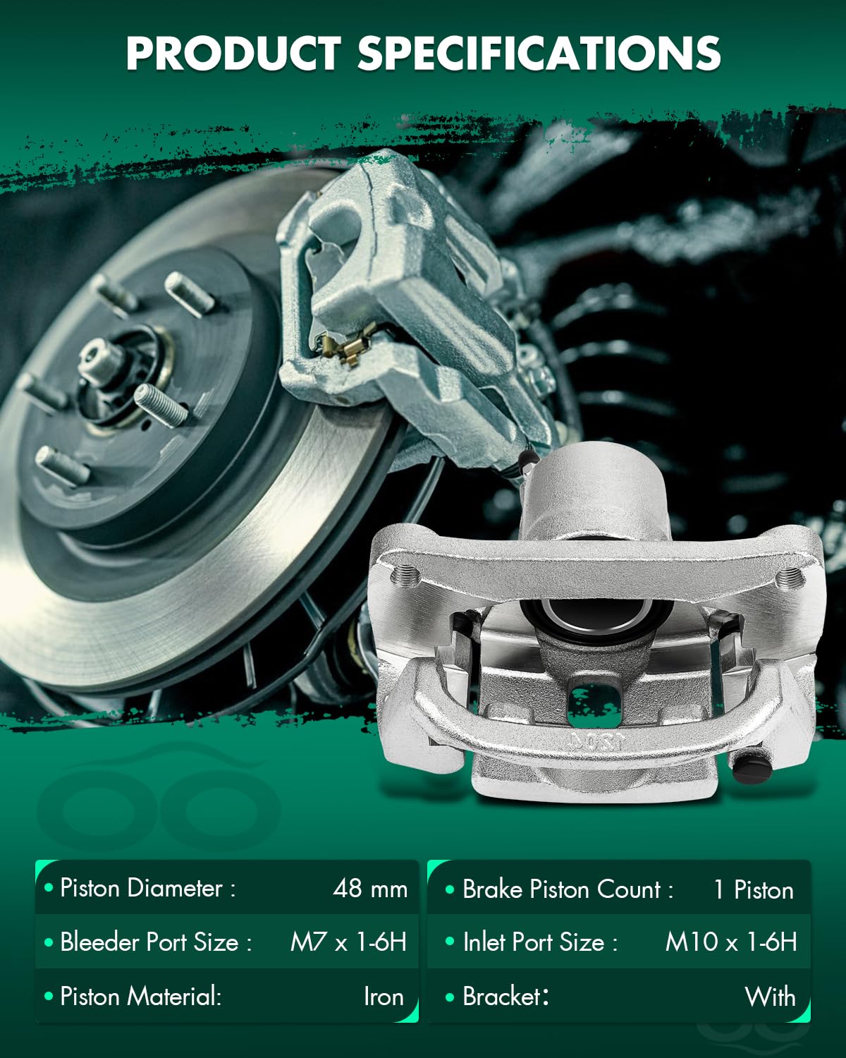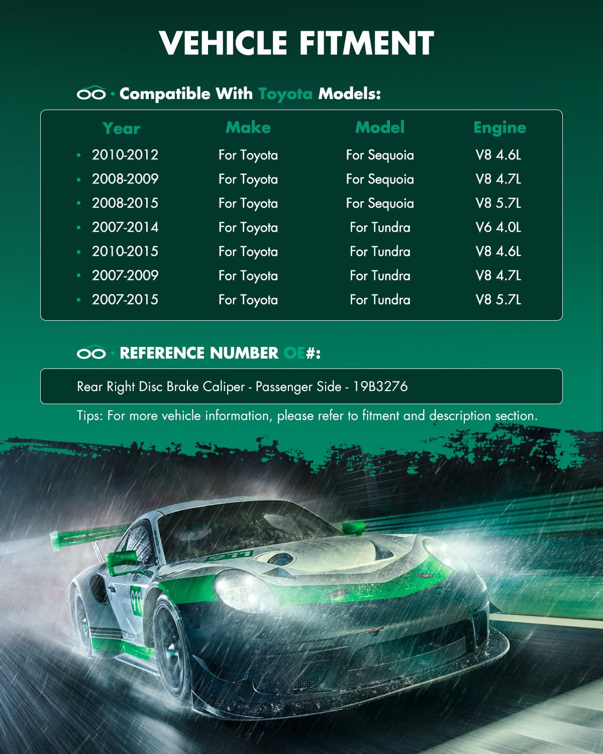 Specification:Placement on Vehicle: Rear Right (Passenger Side)Brake Calipers:Bracket: withInlet Port Size: M10 x 1-6HBleeder Port Size: M7 x 1-6HPiston Size: 48mmBrake Piston Count: 1 PistonPiston Material: IronCaliper Finish: ZincificationInterchange Part Number: 19B3276Package Includes: 1 x Brake CaliperCompatible with:(For More Details, Please Check ''FITMENT'' in the Upper Left Corner)For Toyota Sequoia 2008-2017For Toyota Tundra 2007-2017