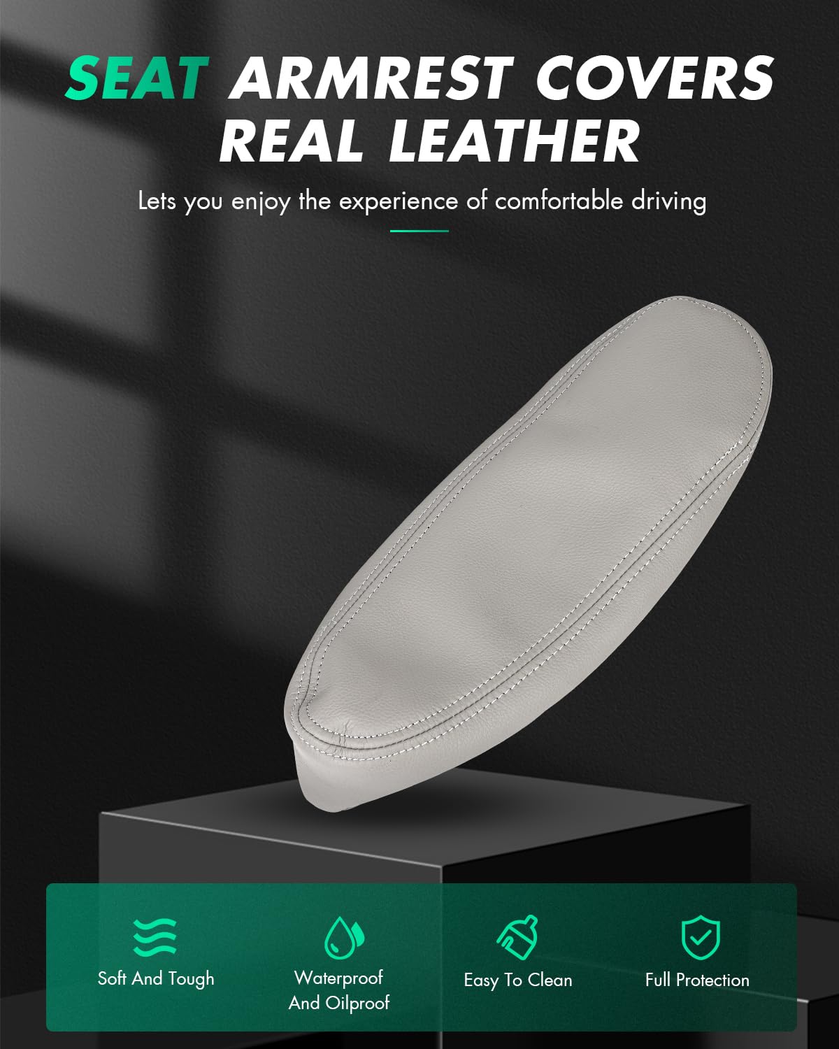 SCITOO Seat Armrest Covers Real Leather Compatible with 2001-2007 for Toyota Sequoia Gray Center Console Lid Replacement