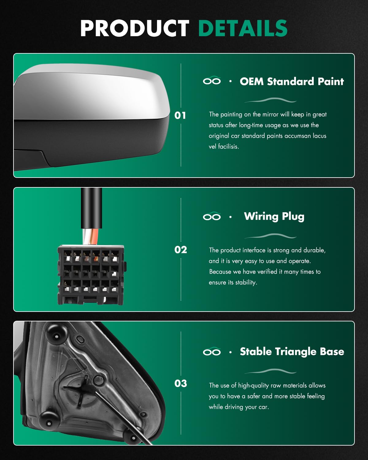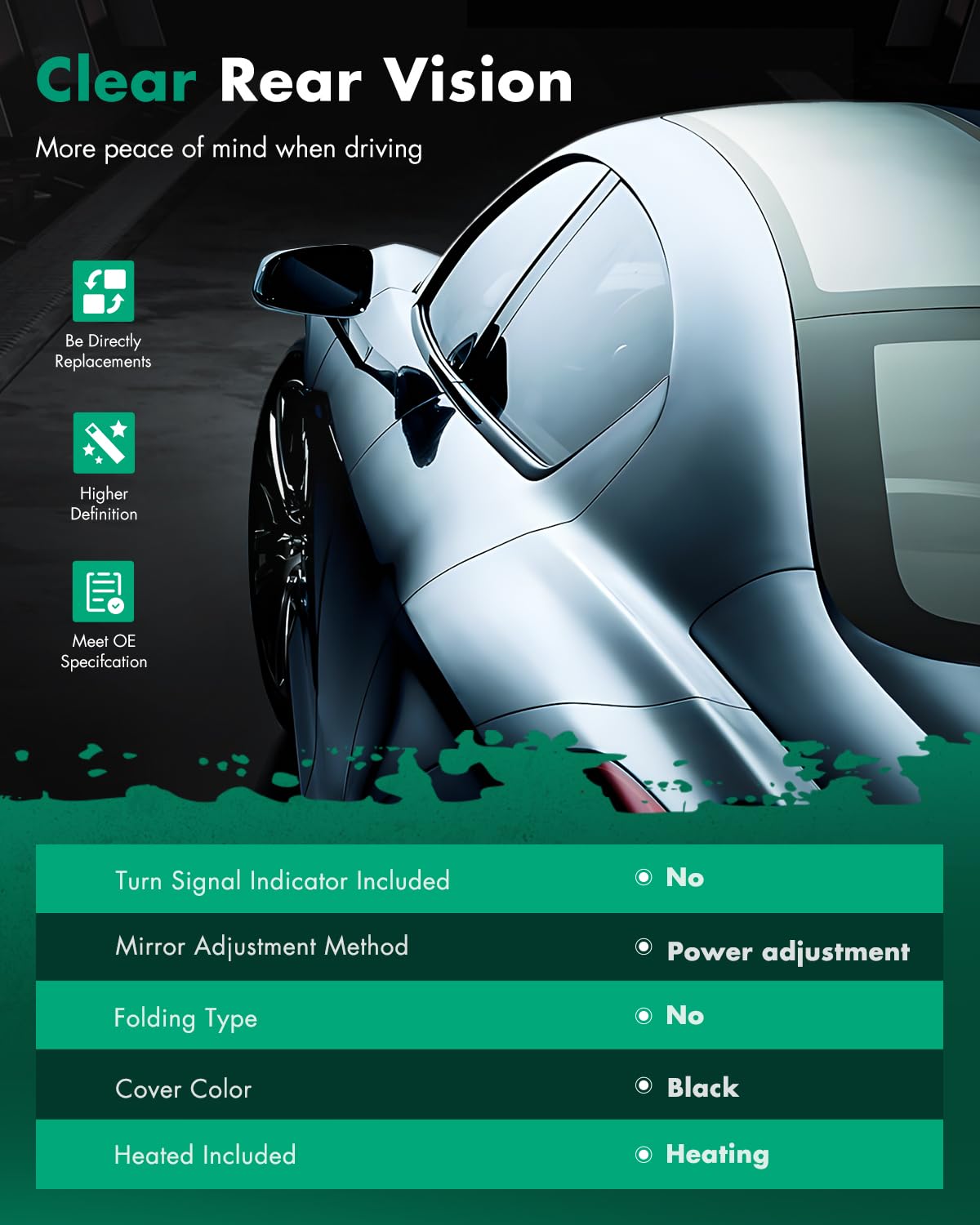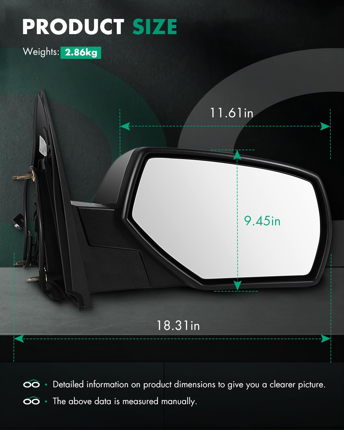 Item sent from our warehouse in USFIT FOR:2014-2017 For Chevy Silverado 15002014-2017 For GMC Sierra 1500SPECIFICATIONS:Fits RH (Passenger Side) Power Adjustment Heating WHEN YOUR SIDE VIEW MIRRORS NEED TO BE REPLACEDDo you notice something missing from the side of your car every time you signal to change lanes? Were you backing up into or out of a parking space without looking at both sides of your vehicle? If so, then it's likely you've damaged your door mirror glass or completely busted the whole door mirror. This is quite a common occurrence, and almost everybody at one point or another has suffered the trauma of breaking one (or both) of their side door mirrors. Either way, driving without a side mirror is dangerous and leaves open the possibility you wouldn't see a car next to you if you want to change lanes. That means that you need to get a new door mirror on your car.Package Including1 PCS right side mirror