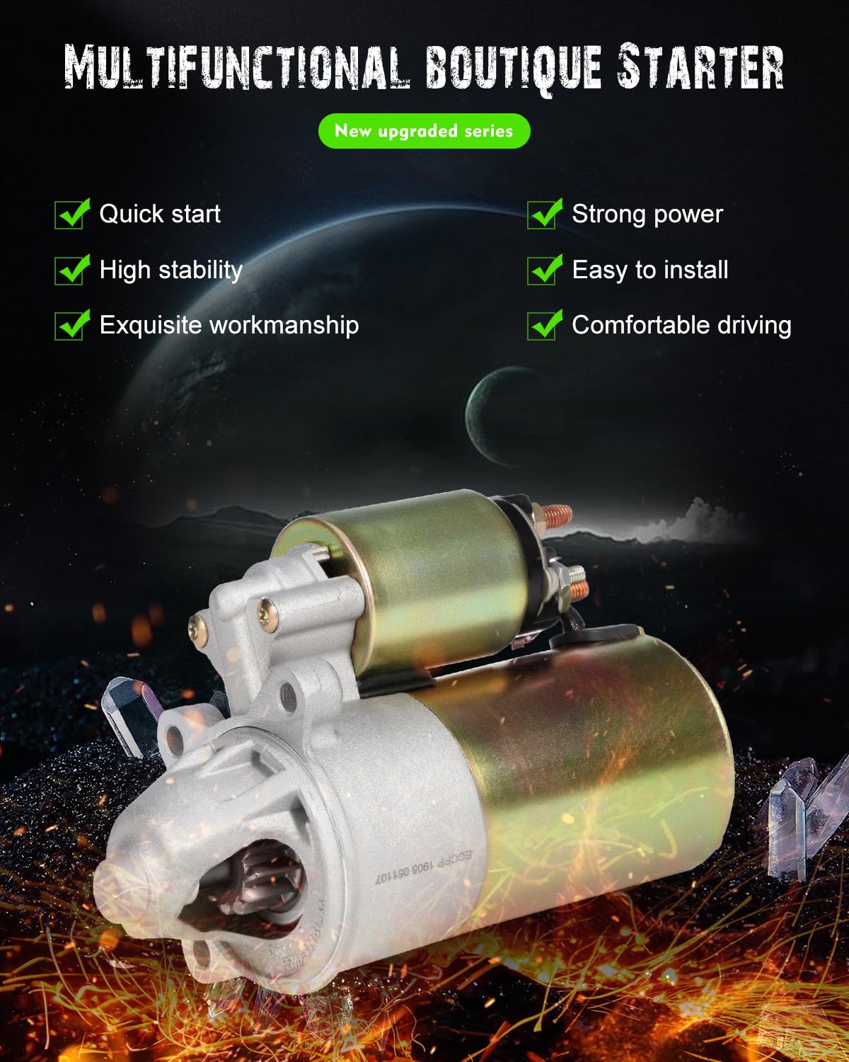 Q: What should I do if my starter is making noise?A: If your SCITOO starter is making noise, it may indicate misalignment with the flywheel or wear on the starting gear. It's essential to check the installation for proper alignment and ensure that all components are in good condition. If the noise persists, consider consulting a mechanic for diagnosis and repair.
