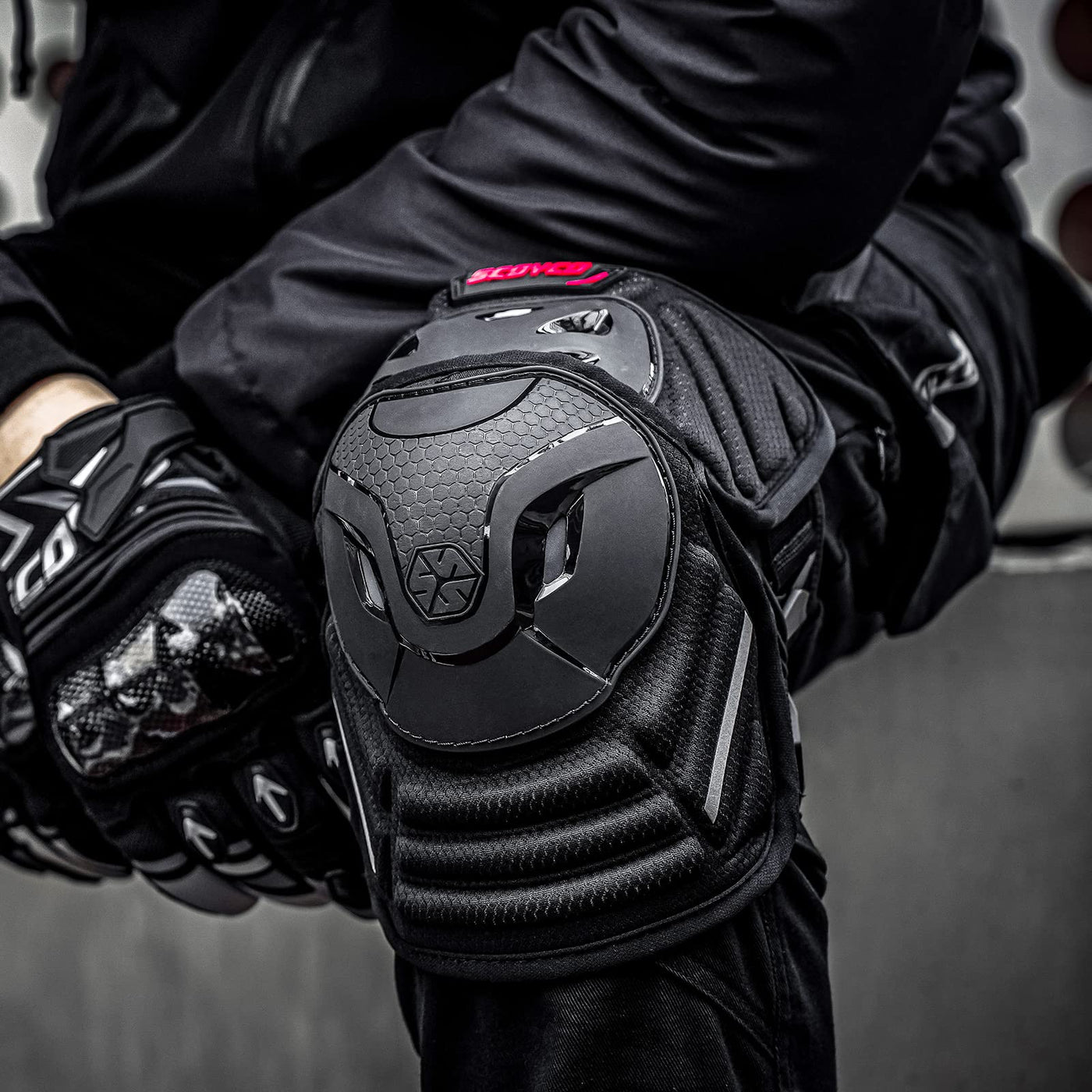 Scoyco 1 Pair Motorcycle Knee Shin Guard Pads Black Adjustable Knee Cap Pads Protector Armor For Motocross Racing Mountain Biking