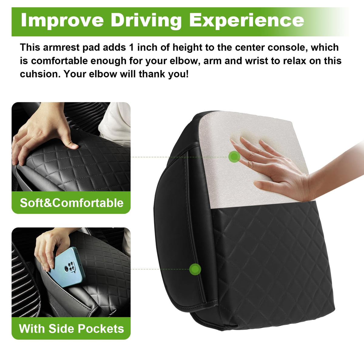 Upgrade your Wrangler's interior with our precision-fit Wrangler console cover, available for 2011-2017 JK and 2018-2025 JL models. Featuring a luxurious diamond grid pattern, it shields your armrest from scratches, dirt, and pet damage while adding a refined look. The 1-inch raised foam padding enhances comfort, and dual-side storage pockets (9.4'' x 3.34'') keep small items organized. Secured by non-slip elastic bands and backed by a friction grip, it stays firmly in place. Packaged in an elegant gift box, its ready to impress!