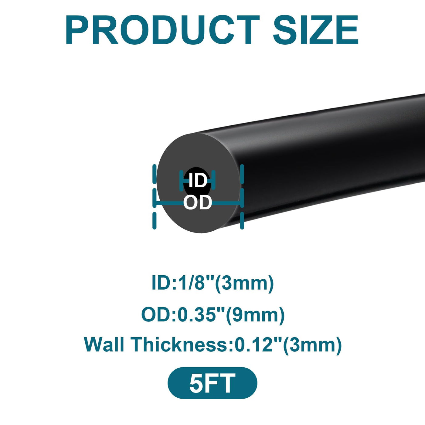 SDZONGES Vacuum Hose Automotive, 5FT ID 1/8''(3mm) ID Vacuum Hose, 130PSI Max Pressure Silicone Vacuum Tube Black.
