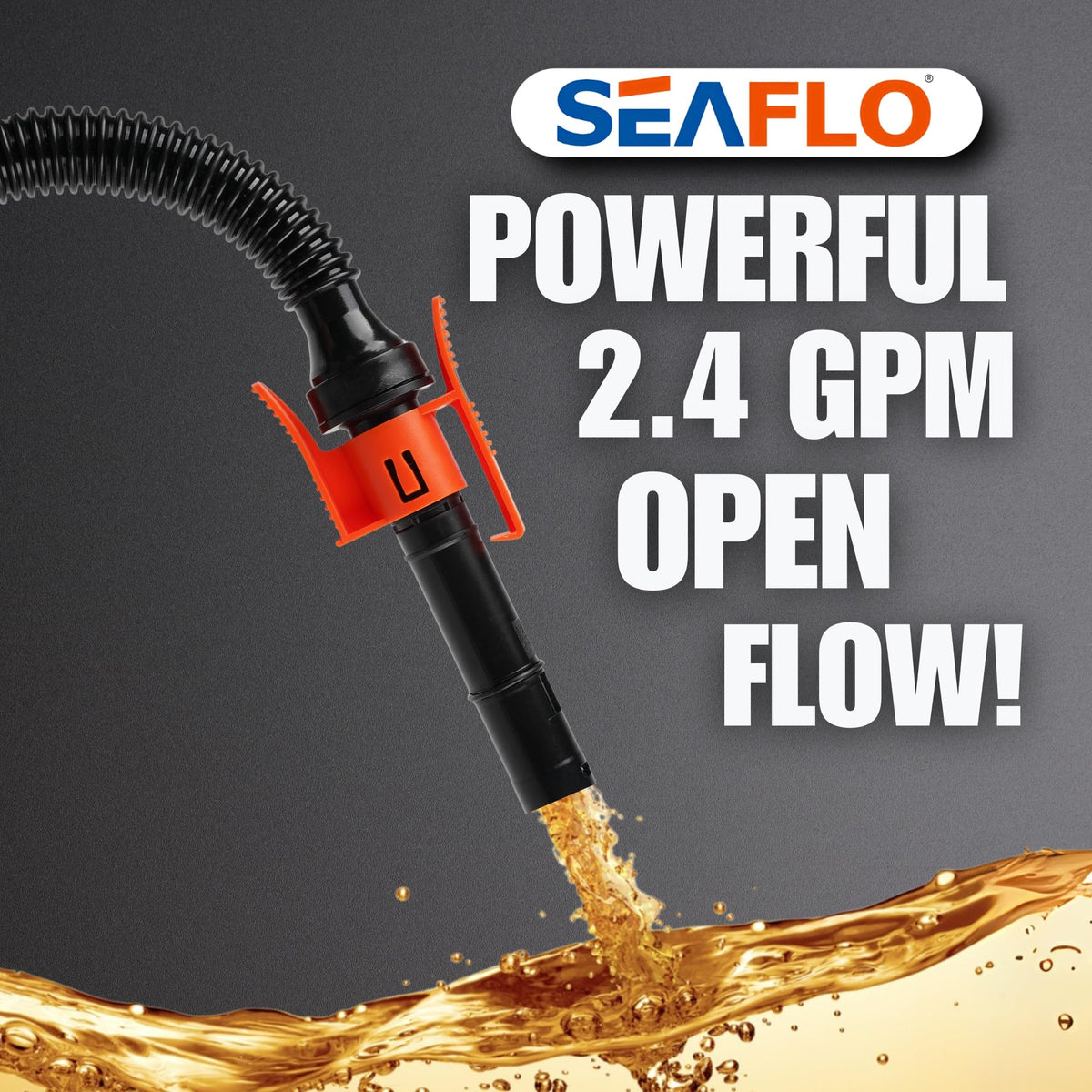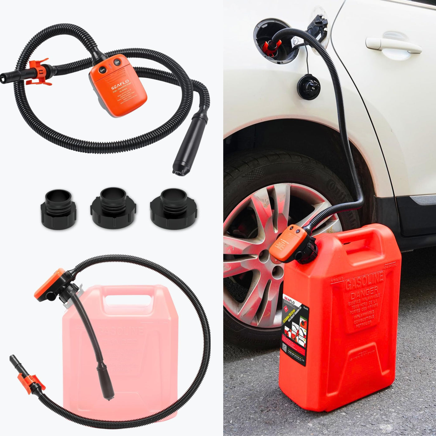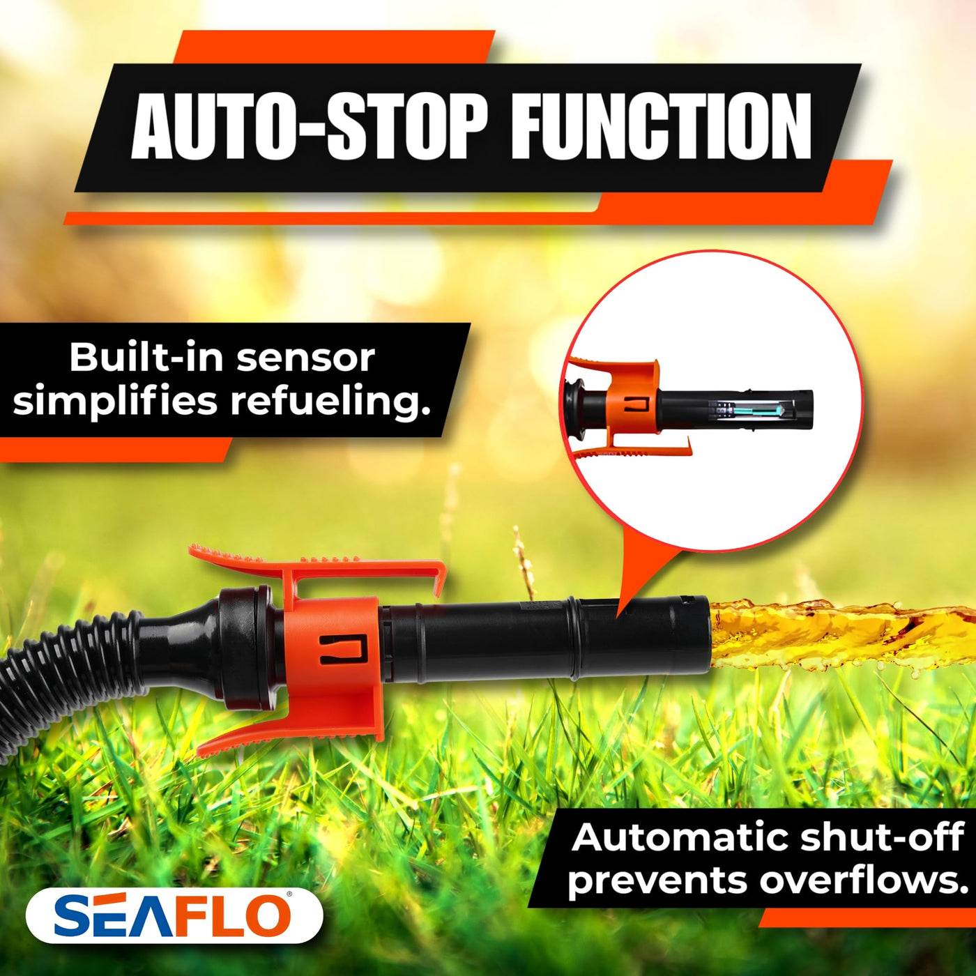 SEAFLO Automatic Fuel Transfer Pump, 2.4 GPM Flow, Auto-Stop Sensor, Long Discharge Hose, Portable Gas Can Pump for Oil, Diesel,