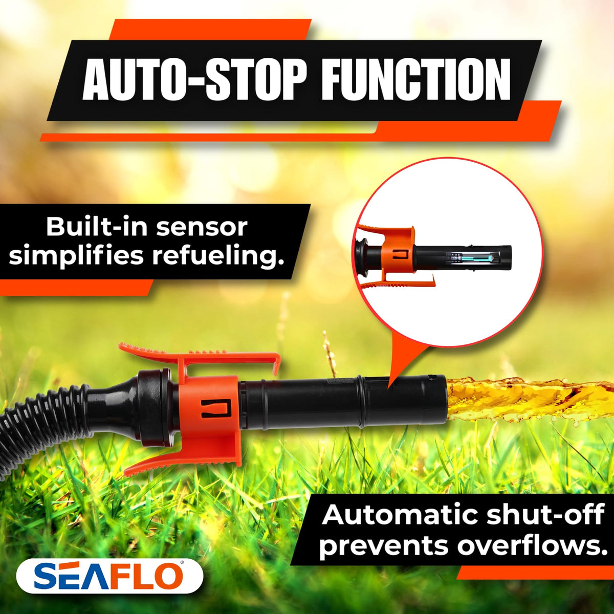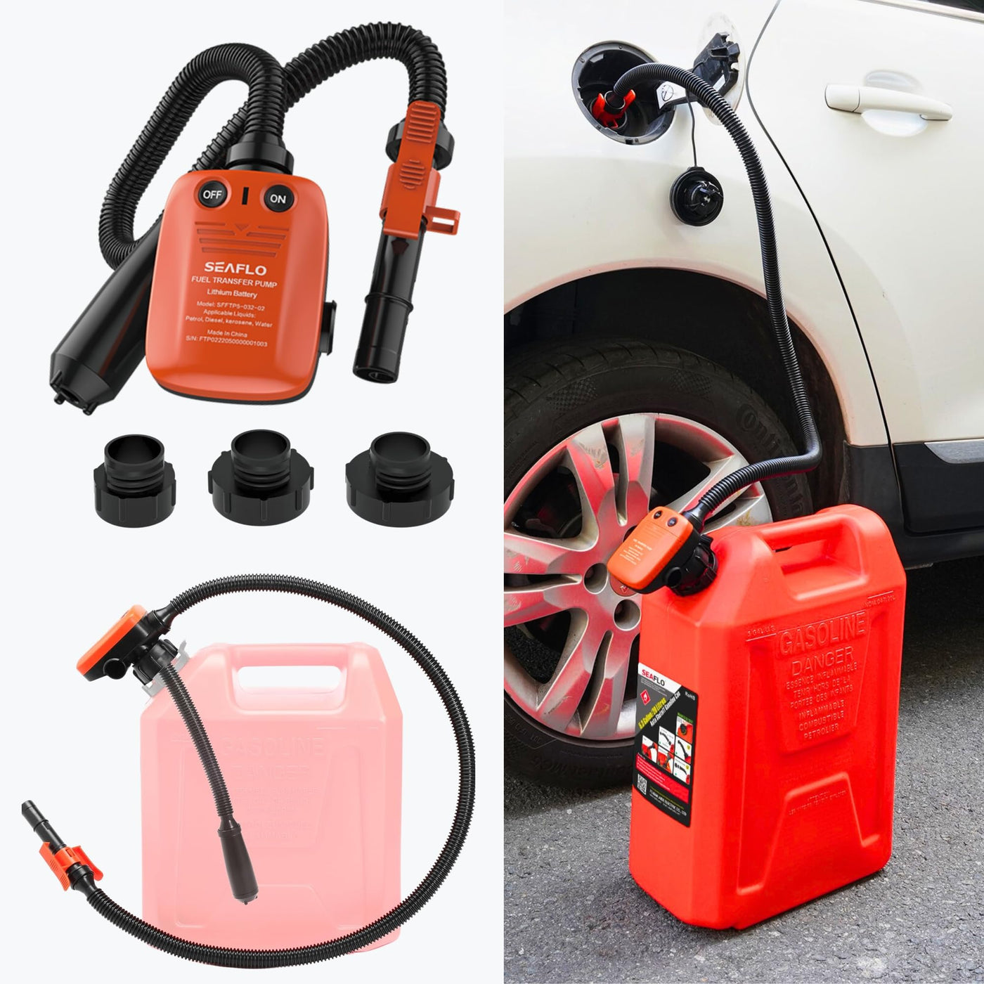 The SEAFLO Rechargeable Automatic Fuel Transfer Pump offers a reliable, cordless solution for fast and effortless fuel transfers. Powered by a rechargeable lithium battery, this pump eliminates the hassle of manual pouring, ensuring safe, clean, and precise fueling every time. Whether refueling boats, ATVs, lawn equipment, generators, or performing emergency fuel transfers, SEAFLO provides maximum convenience, safety, and portability. Engineered with a robust 3.2 gallons per minute (GPM) flow rate, it swiftly handles gasoline, diesel, kerosene, antifreeze, mild detergents, and other non-corrosive liquids. An innovative auto-stop sensor automatically shuts off fuel flow when tanks reach capacity, preventing messy spills and waste. Its ergonomic, one-touch operation simplifies fueling, while the compact, lightweight design and cordless functionality allow you to refuel anytime, anywhere. Built with durable materials, including an 18-inch rigid suction pipe and 41-inch flexible discharge hose, this fuel pump offers precision and dependability. Backed by SEAFLOs trusted 4-Year Limited Warranty, this pump meets CE & ROHS certification standards, assuring superior quality and safety.