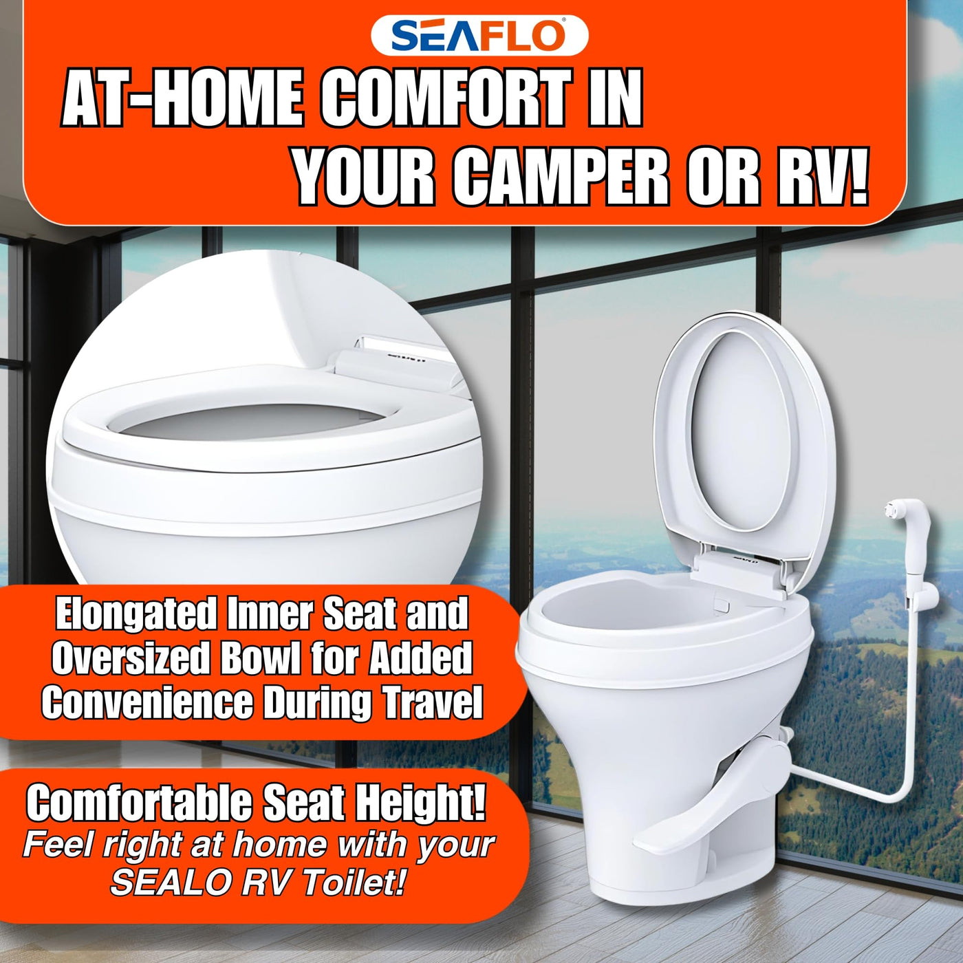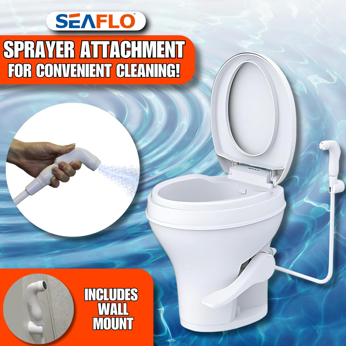 Seaflo Rv Toilet - Standard Height, Gravity Flush, Foot Pedal, Soft Close Lid With Sprayer Attachment