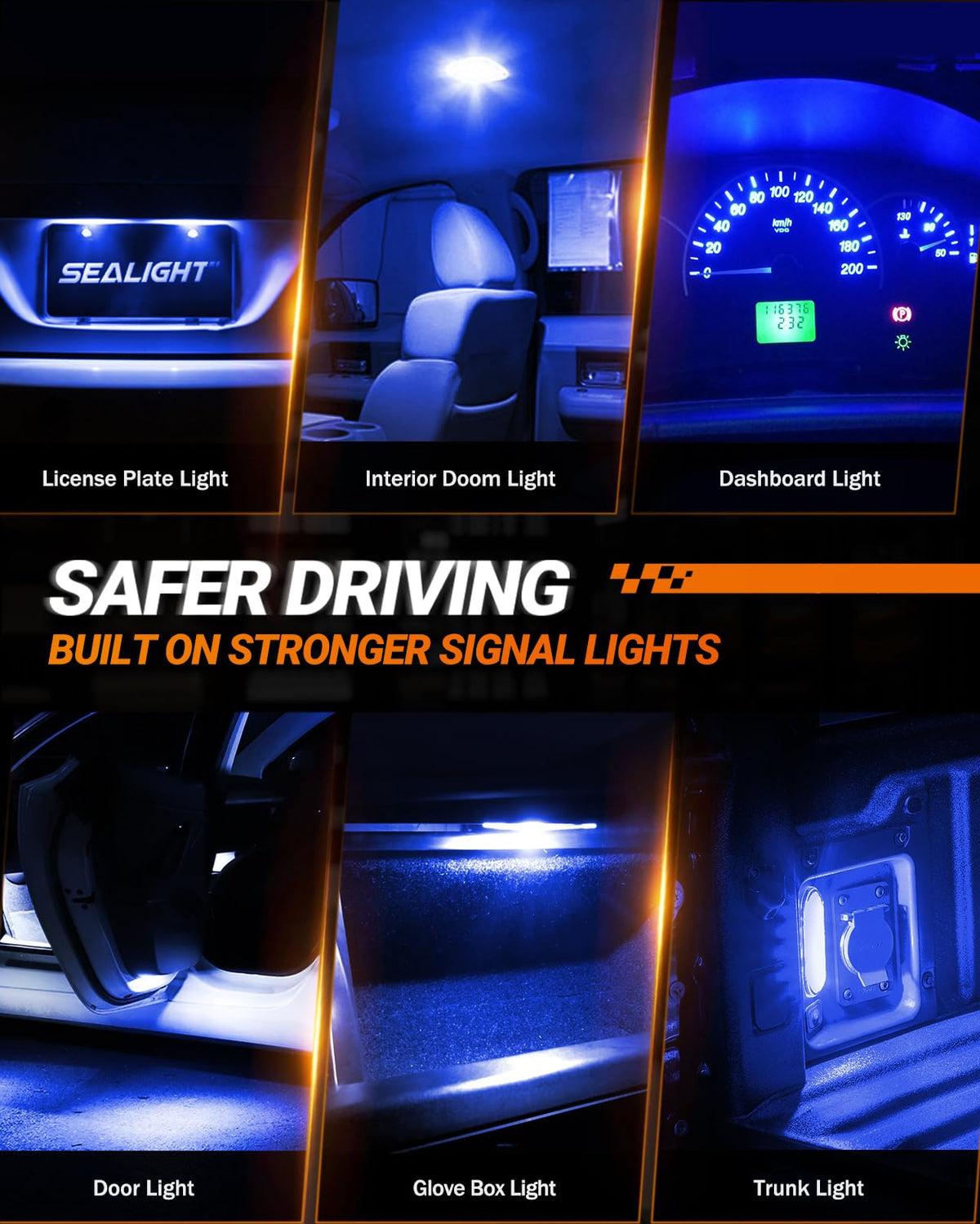 Sealight 194 Led Bulbs Blue, 168 2825 T10 W5W 3030 Bright Led Chips, Dashboard Light, Dome Light, Map Light, Door Light, Courtes