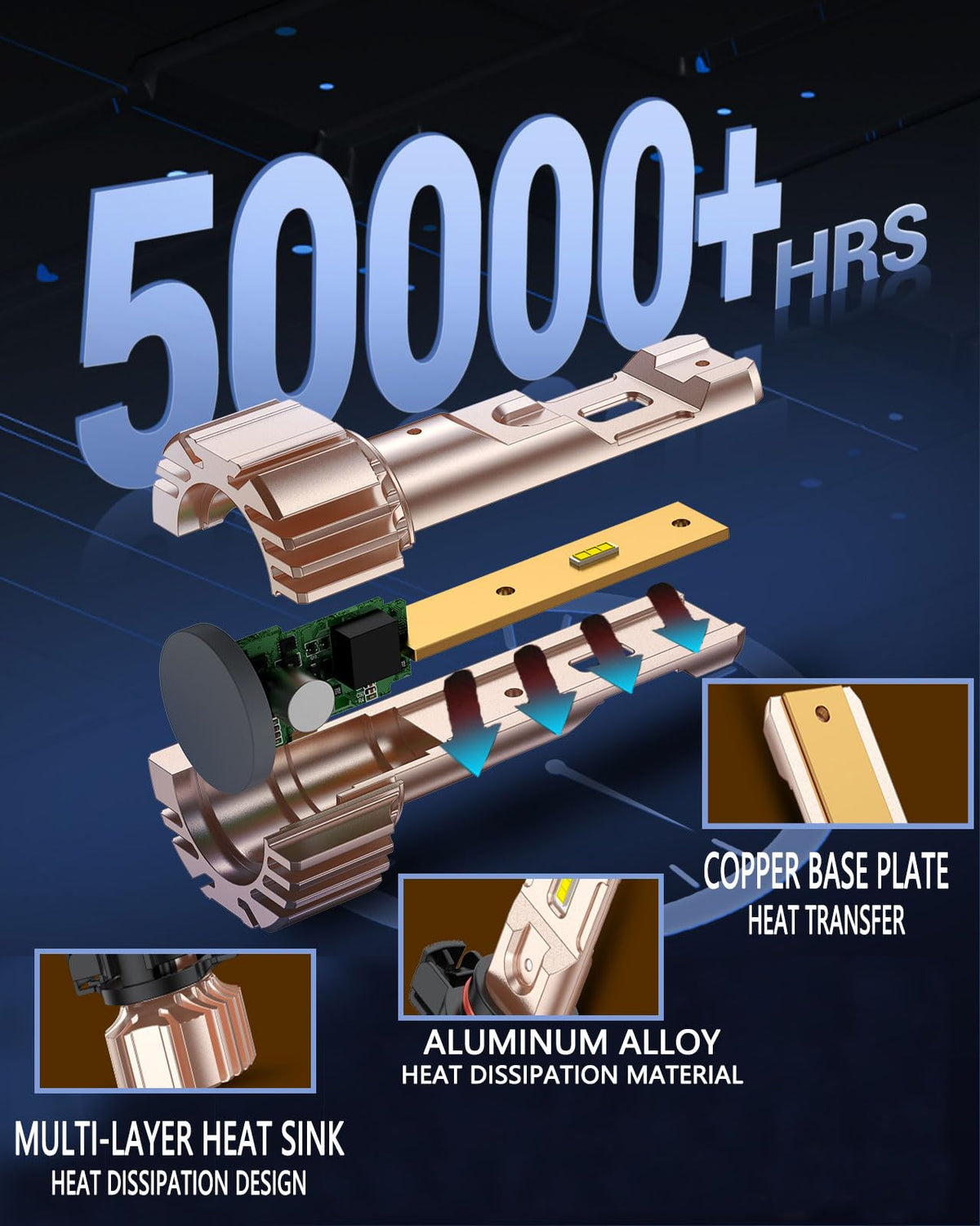 Q: What materials are used in the construction of these fog light bulbs?A: The SEALIGHT XF3A fog light bulbs feature a durable aluminum body, which contributes to their ultra-high heat dissipation performance, ensuring a longer lifespan of over 50,000 hours.