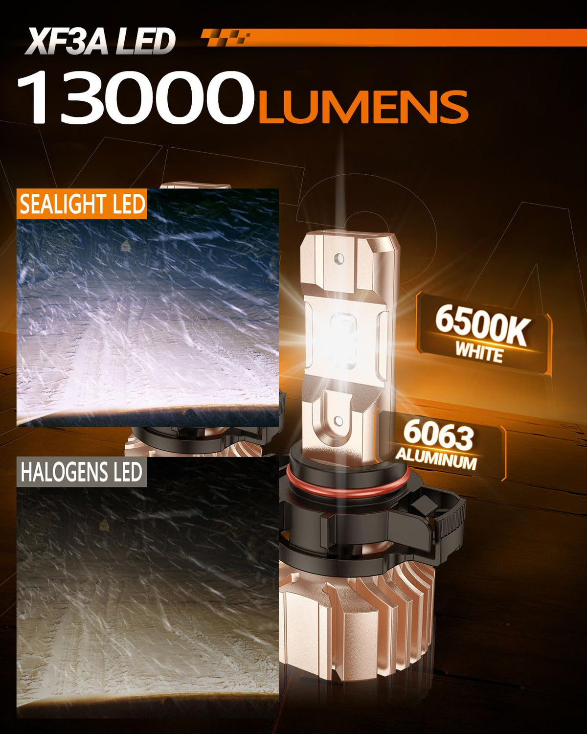 SEALIGHT XF3A 5202 LED Fog Light Bulbs, 10000LM 6500K Cool White, 600% Super Brightness, PS19W PS24W 5202 LED Bulbs, Ultra-High