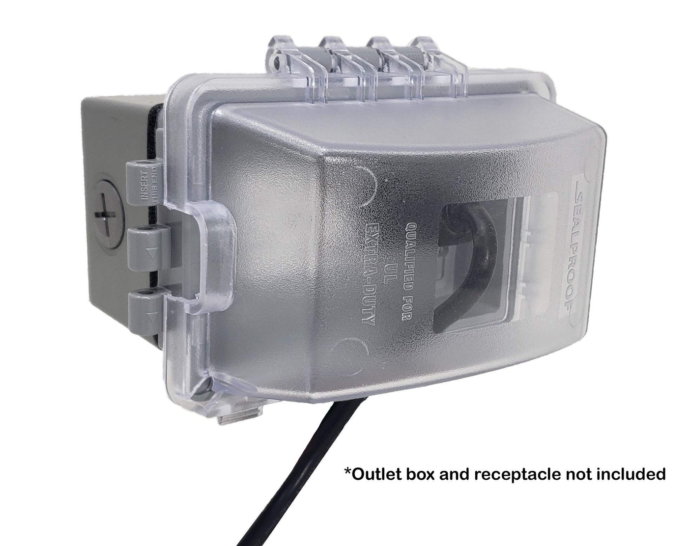 The Sealproof 1-Gang In Use Weatherproof Electrical Outlet Cover is a robust solution designed to withstand the challenges posed by wet and damp locations. This product is UL Extra Duty Compliant and features a patented multi-configuration design, making it perfect for various applications. Crafted from durable polycarbonate, this outlet cover is not only lockable but also easy to install, ensuring a secure and weatherproof environment for your electrical connections.