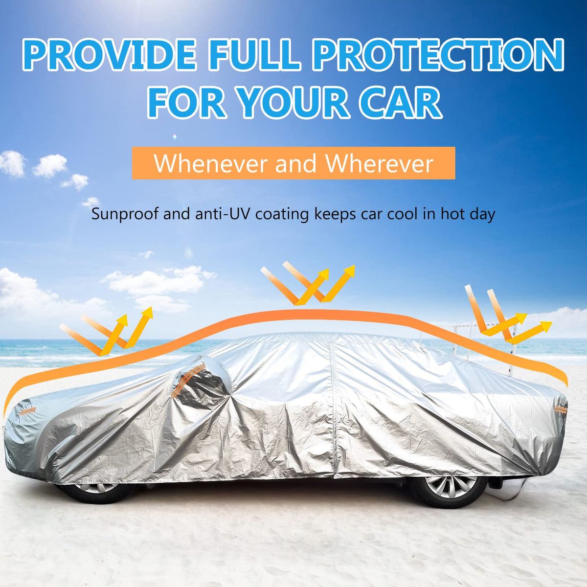 Seazen Car Cover Waterproof All Weather, Full Car Covers Uv Protection/Snowproof/Dustproof, Universal Car Cover 2 Layer With Zip