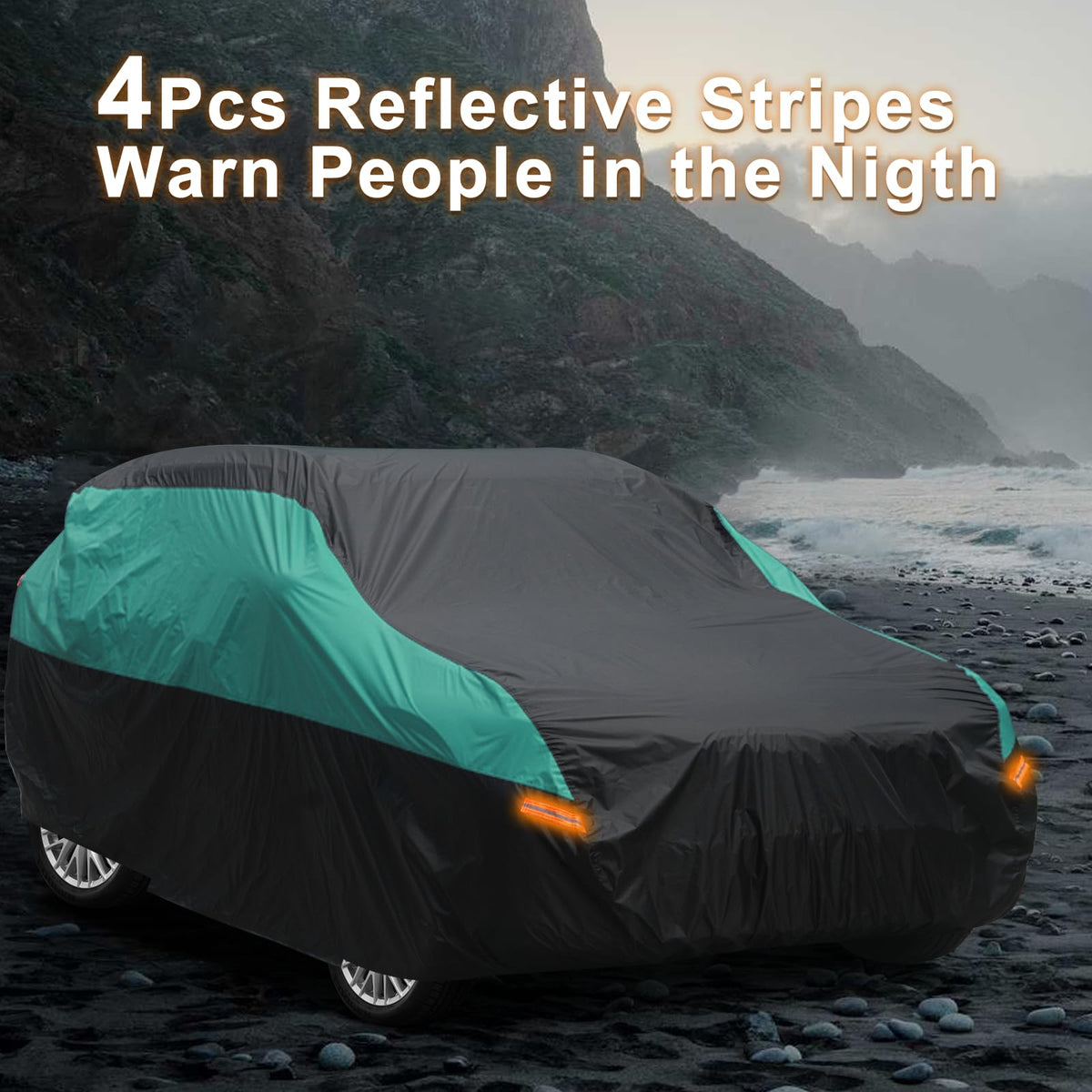 Q: How does the SEAZEN Car Cover protect against different weather conditions?A: This car cover is made from durable 210T fabric with a waterproof coating, ensuring it can withstand rain, snow, UV rays, and wind. It's designed for all-season protection, shielding your vehicle from dirt, dust, scratches, and industrial pollutants.