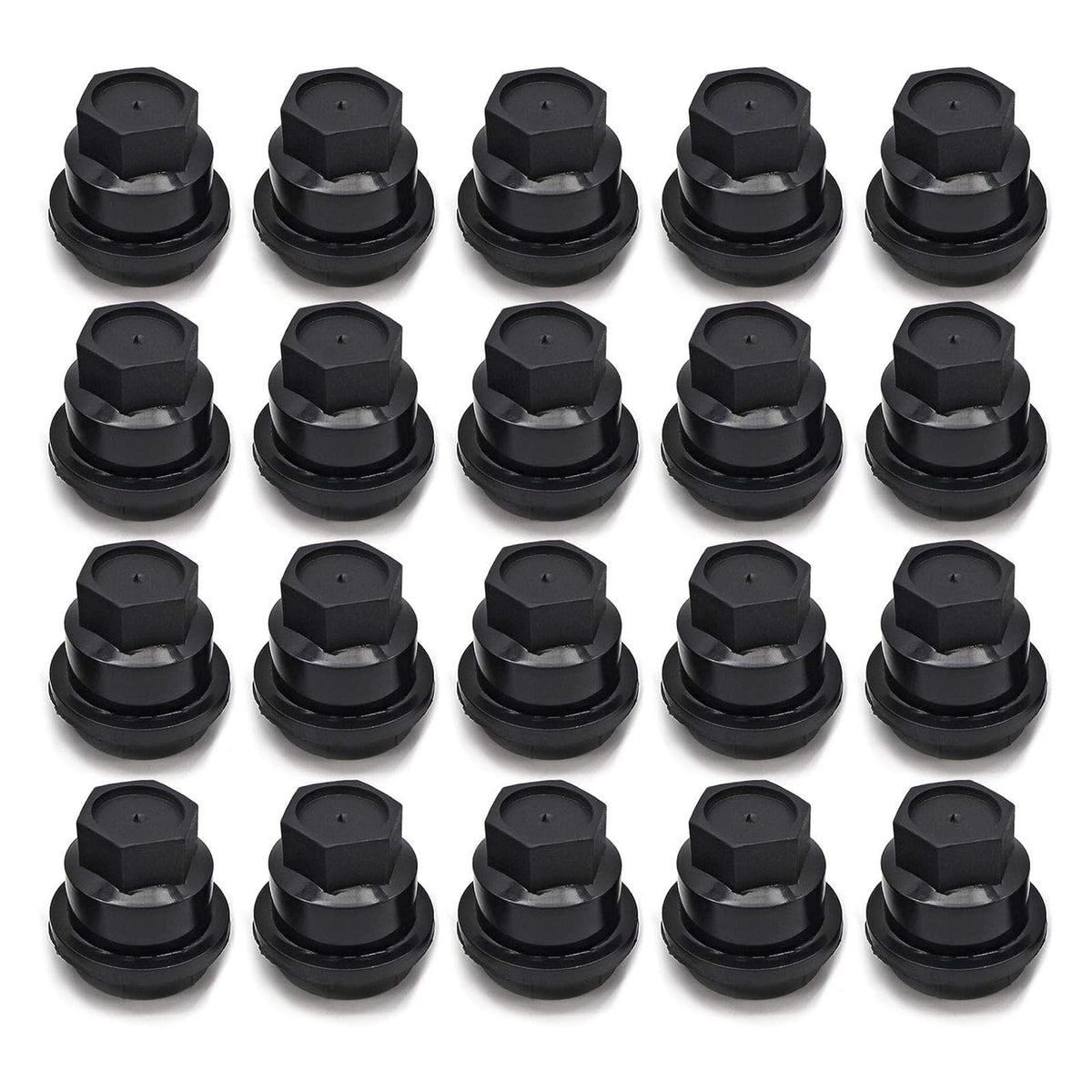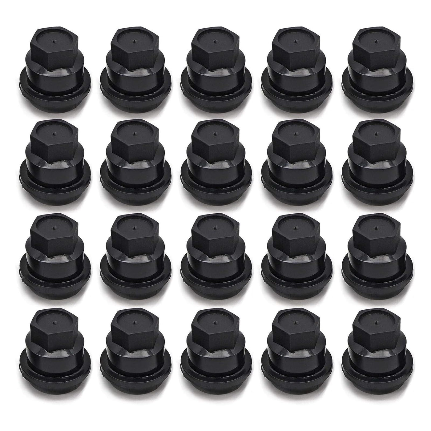 Q: How many lug nut covers are included in the package?A: Each package includes 20 new black plastic wheel lug nut caps, providing ample coverage for your vehicle's lug nuts.