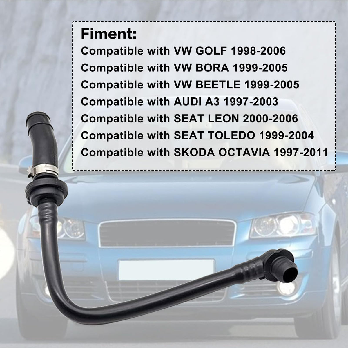 Q: What vehicles are compatible with the SecosAutoparts Brake Booster Vacuum Hose?A: The SecosAutoparts Brake Booster Vacuum Hose is compatible with several VW models including the Golf (1998-2006), Bora (1999-2005), Beetle (1999-2005), as well as the Audi A3 (1997-2003), SEAT Leon (2000-2006), Toledo (1999-2004), and Skoda Octavia (1997-2011).