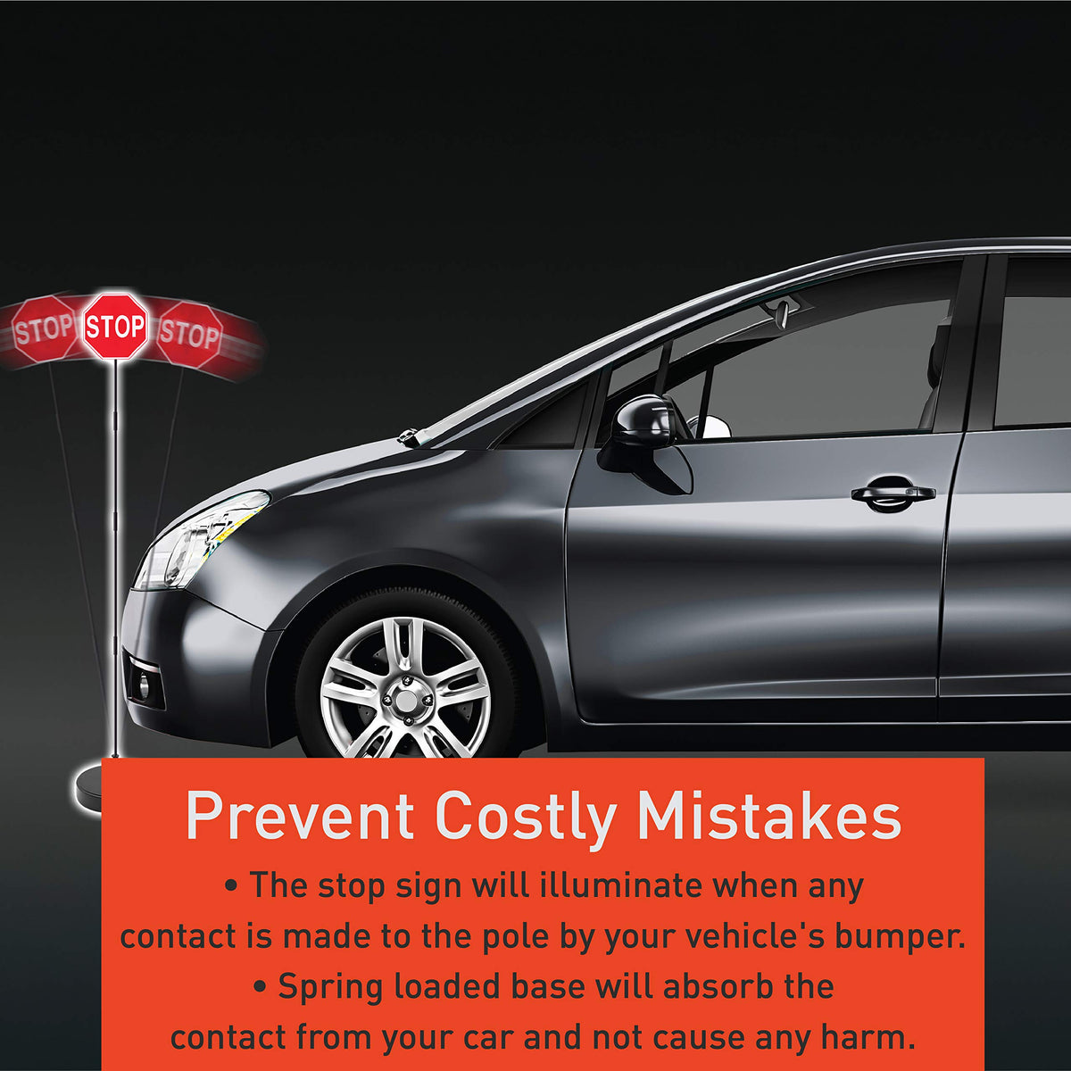 Park Perfectly Every Time. Worried about bumping something pulling into your garage? Do you have a tight or awkward parking spot? Or are you or someone in your household uncomfortable with parking? INTRODUCING THE GARAGESTOPSIGNZ BY SECURITYMAN. Our LED garage stop sign is an easy to use parking assistant that will help you pull into your garage perfectly every time! HERE IS WHY THE GARAGESTOP SIGN BELONGS IN YOUR GARAGE. WILL BE YOUR BEST PARKING BUDDY ELIMINATE THE ANXIETY: Park perfectly every time! MOTION SENSOR: The stop sign will light up with any contact to the pole. EASY TO SEE: Super bright red LEDS inside a 7 stop sign will illuminate to warn you. WORKS WITH ALL CARS: Can be seen and used regardless of car size. (Truck/Coupe/etc.) HEIGHT ADJUSTABLE (NON-WILT) POLE: (4) 11 poles allow you to set the height up to 55 so it can be seen regardless of car size EASY TO USE & SETUP: Install takes minutes, and you will never have to worry about it again. (Batteries Included). SAFE FOR YOUR CAR: The spring loaded base will allow the pole to absorb any contact from you cars bumper making it safe for your cars paint. WHAT'S INCLUDED 7 LED Stop Sign (2) LR44 Batteries (4) 11 Poles (3) Pole Connectors (1) Spring Loaded Connector (1) Base Plate Instruction Manual No Point in Waiting START USING THE GARAGESTOPSIGN NOW AND PARK PERFECTLY EVERYTIME!