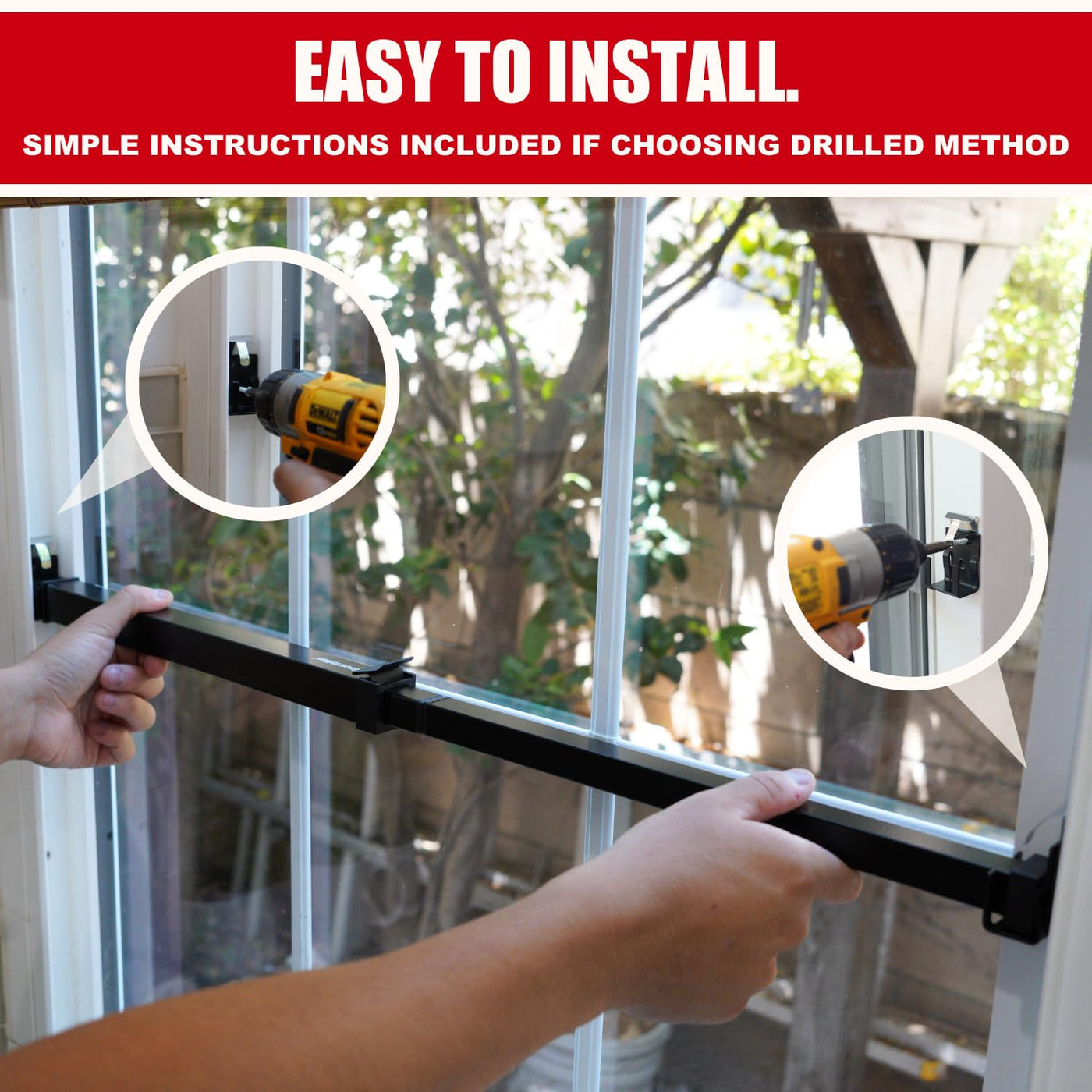 Q: How do I install the SecurityMan Window Security Bar?A: The security bar comes with two easy installation methods: 1) Drilled mounting bracket for extra security, or 2) Direct installation in the window rail without drilling for a quick setup.
