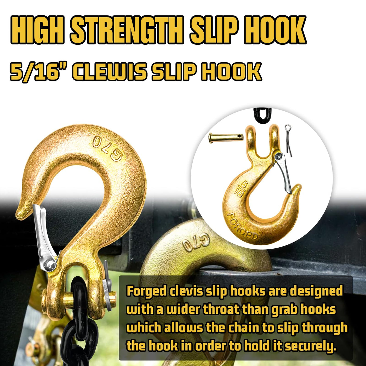 Grade 80 Trailer Safety Chain - 35 Inch with 5/16'' Clevis Slip Hook and Chain Retainer,4,900 LB Work Load|21,000 lbs Break Strength for Lifting,Towing and Transporting(2-Pack)