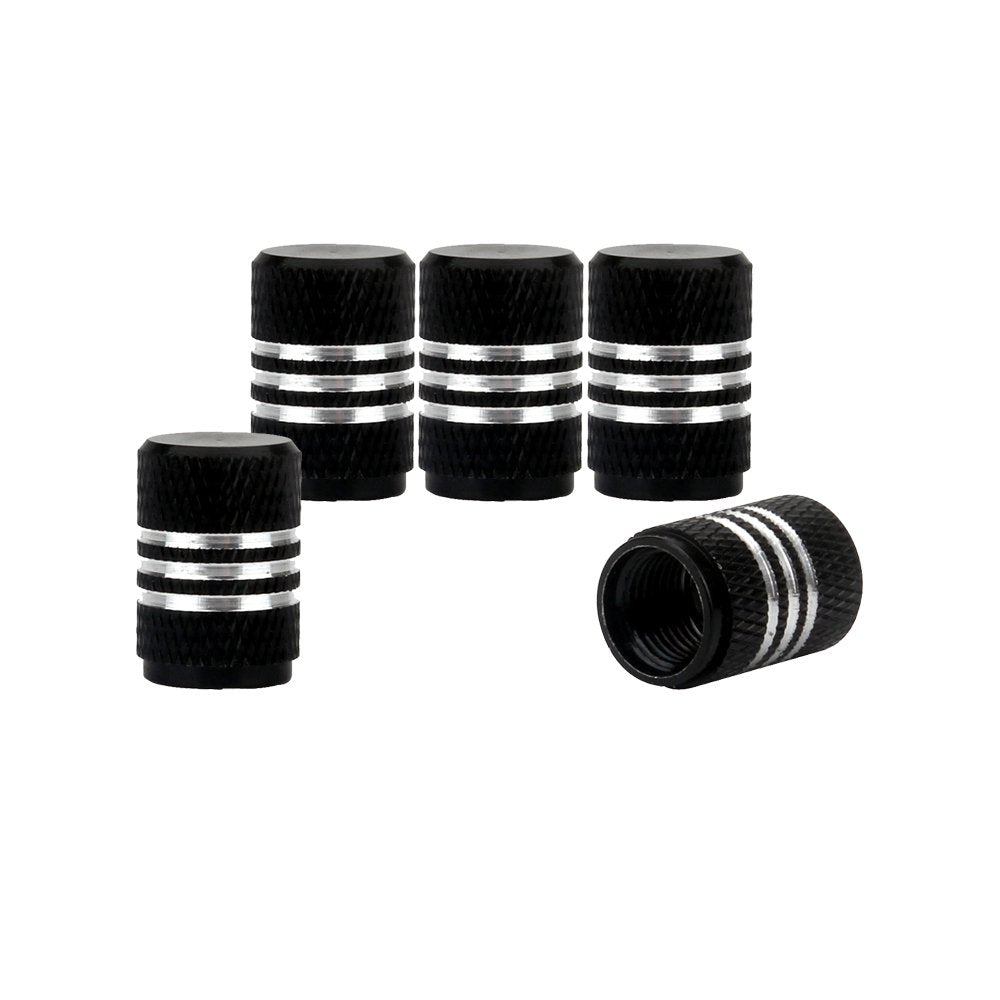 Senzeal 5X Aluminum Car Tire Valve Caps Round Style Bicycle Air Valve Stem Covers Black