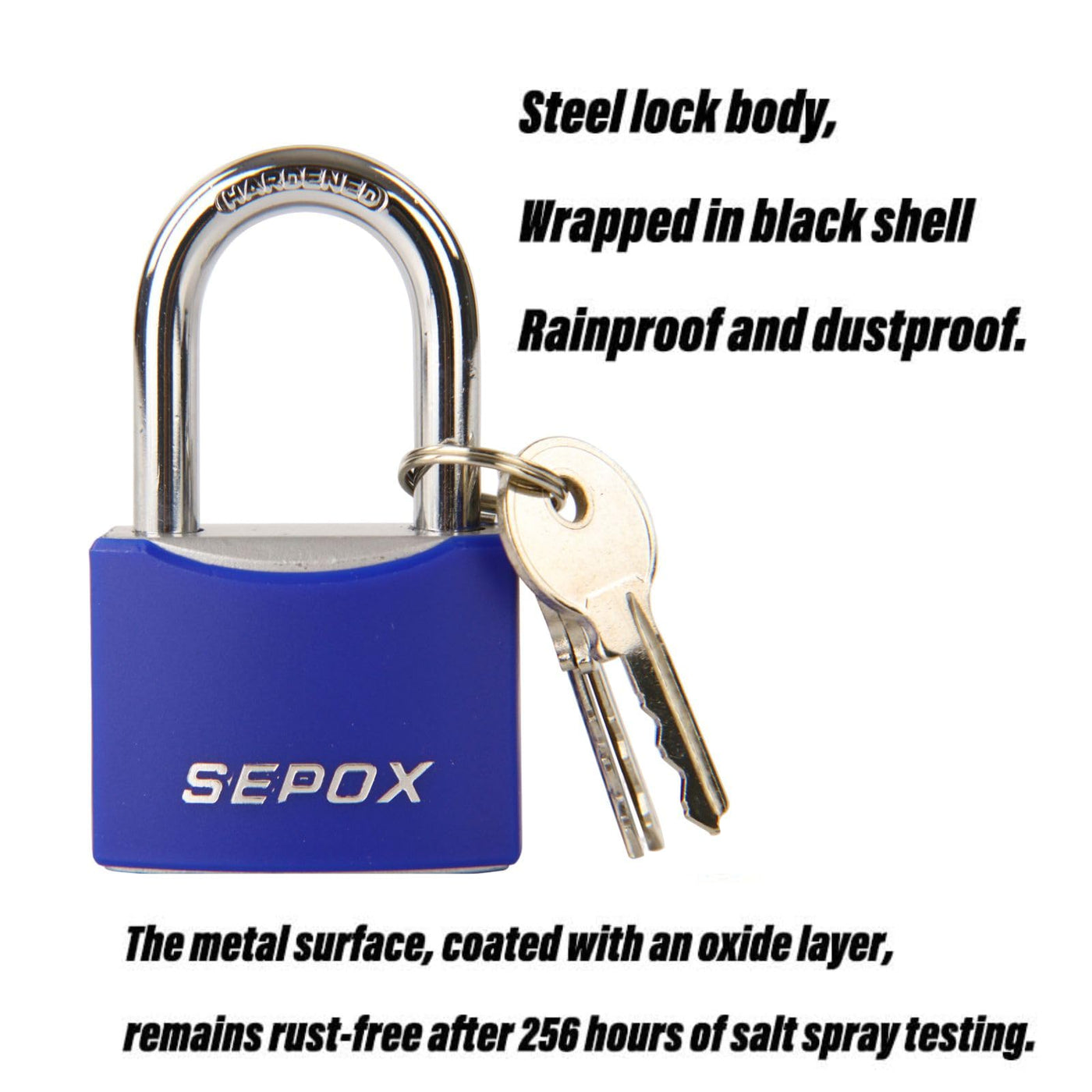 Q: Can these padlocks be used outdoors?A: Yes, SEPOX padlocks are designed for all-weather outdoor use. Their solid steel construction and corrosion-resistant black coating ensure they can withstand harsh weather conditions, making them ideal for securing gates, fences, and toolboxes.