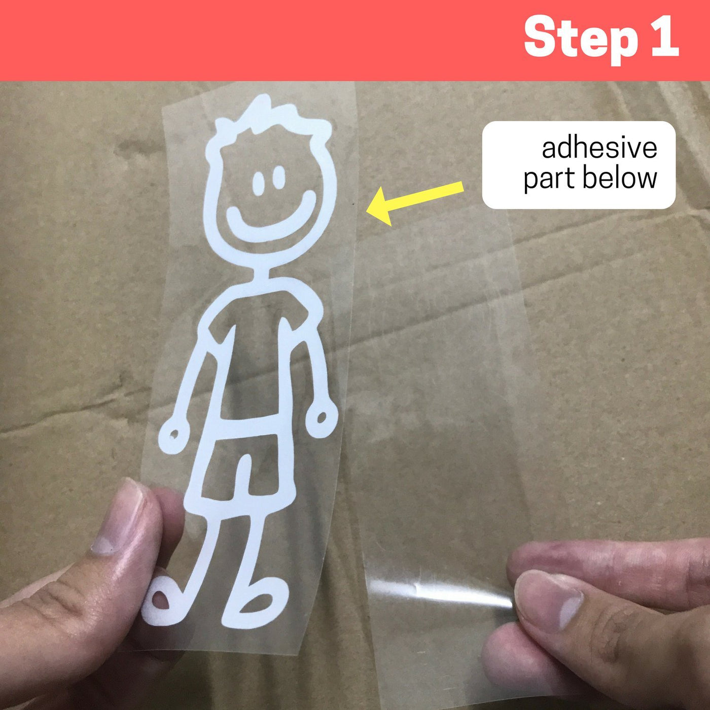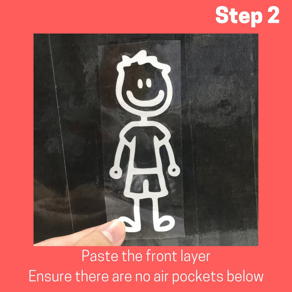 10 different designs 10 different designs of decals, perfect for an exciting day of customization with your family. From Dad and Mom to the dog and cat, we've got your family covered! Easy Installation The decals are also incredibly to install, you can even let your kids do it for you! How to InstallSchritt 1: Carefully separate the two layers. The decal should be on the front layer. Schritt 2: Apply the front layer to your vehicle. Ensure there are no air bubbles beneath. Try running it over with a card or ruler. Schritt 3: Peel off the front film. Congratulations! You have successfully applied your decal!