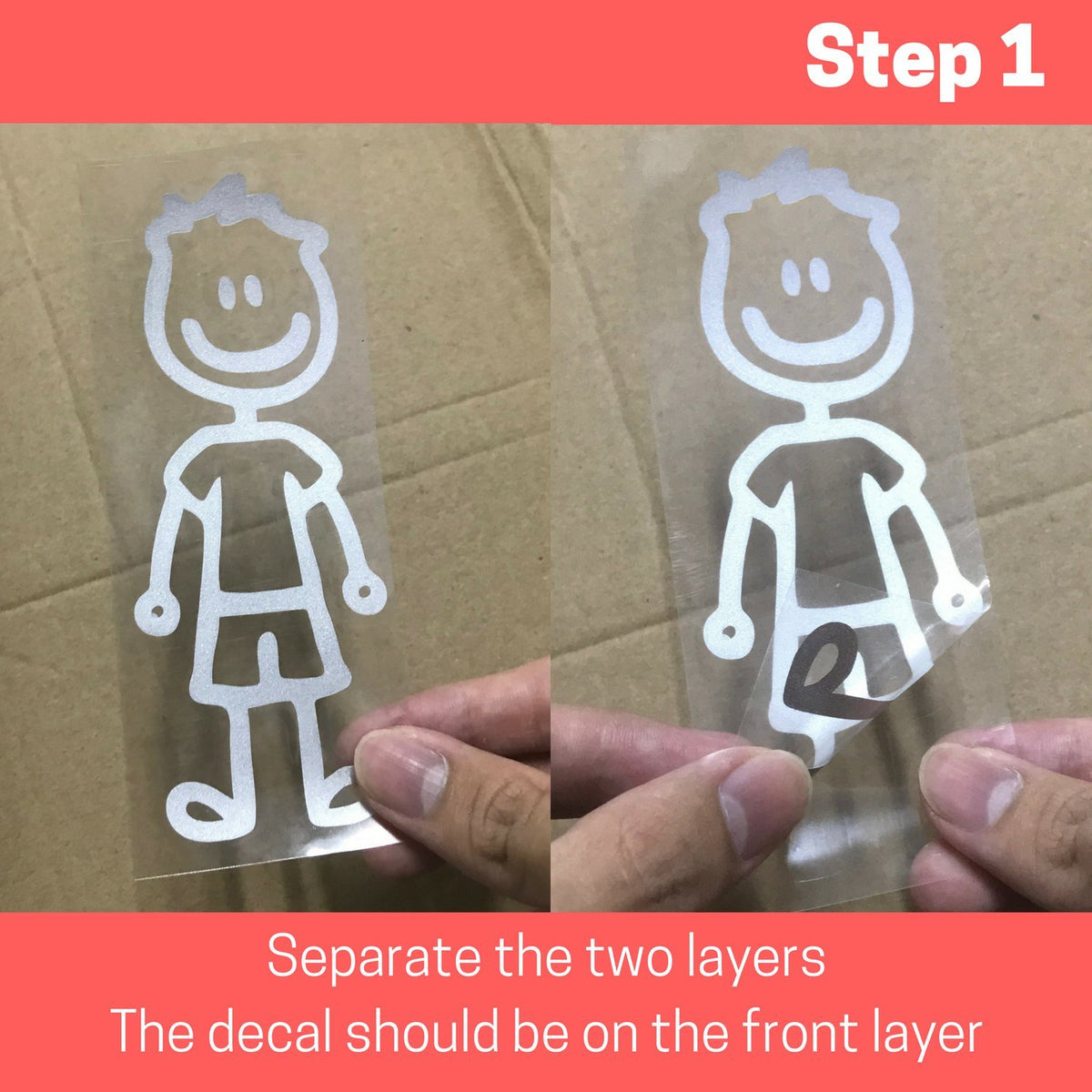 Q: How do I install the Family Car Decals?A: Installation is simple! First, carefully separate the two layers, ensuring the decal is on the front layer. Apply the front layer to your vehicle, smoothing out any air bubbles, then peel off the front film to reveal your decal.