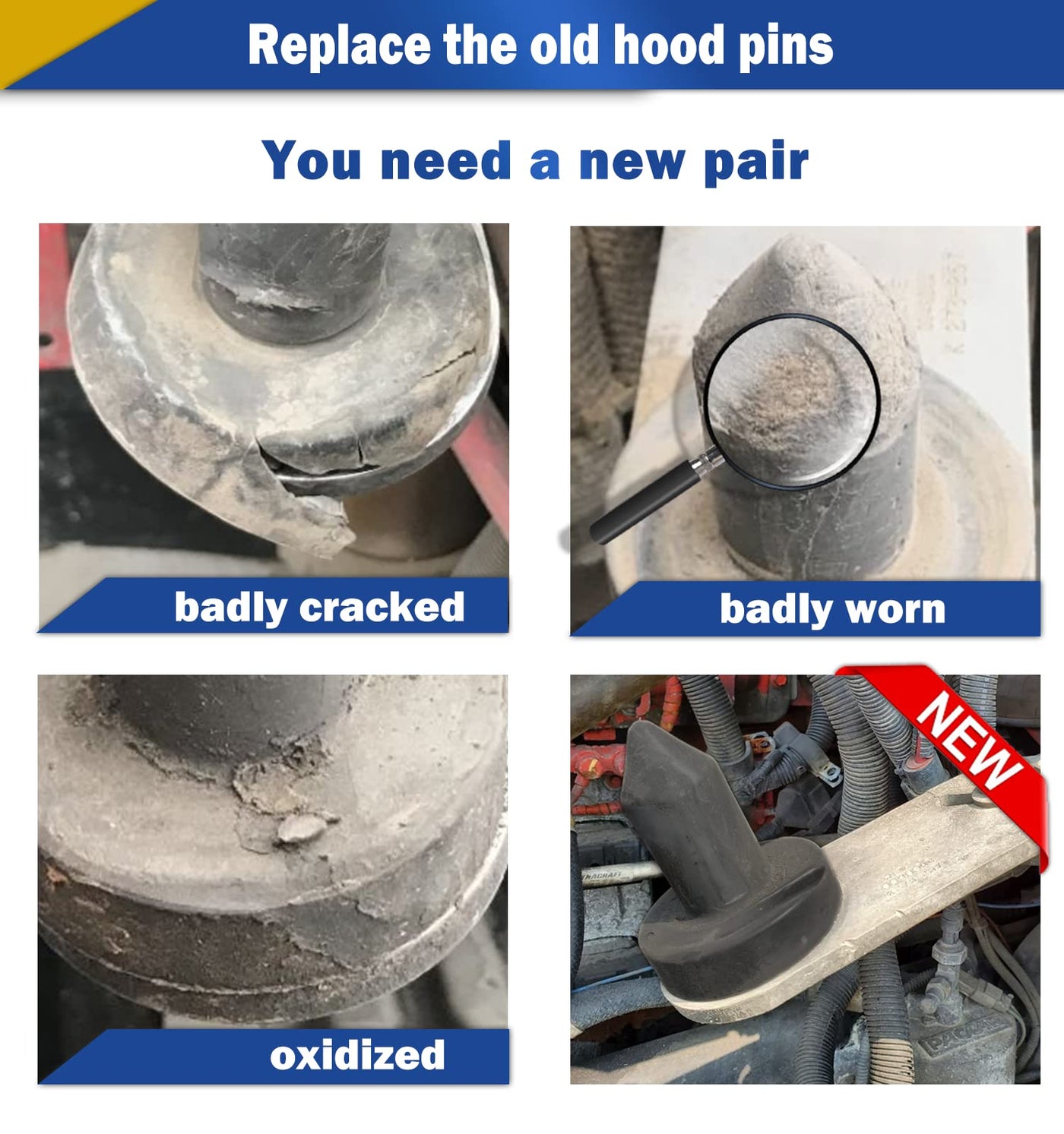 (Set of 2) 924-5410 Hood Pin Poly Kit for Kenworth T2000, T400, T440, T450, T470, T600, T600A, T660, T800, W900 Exterior Hood Mo