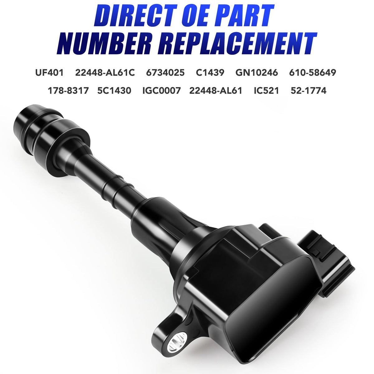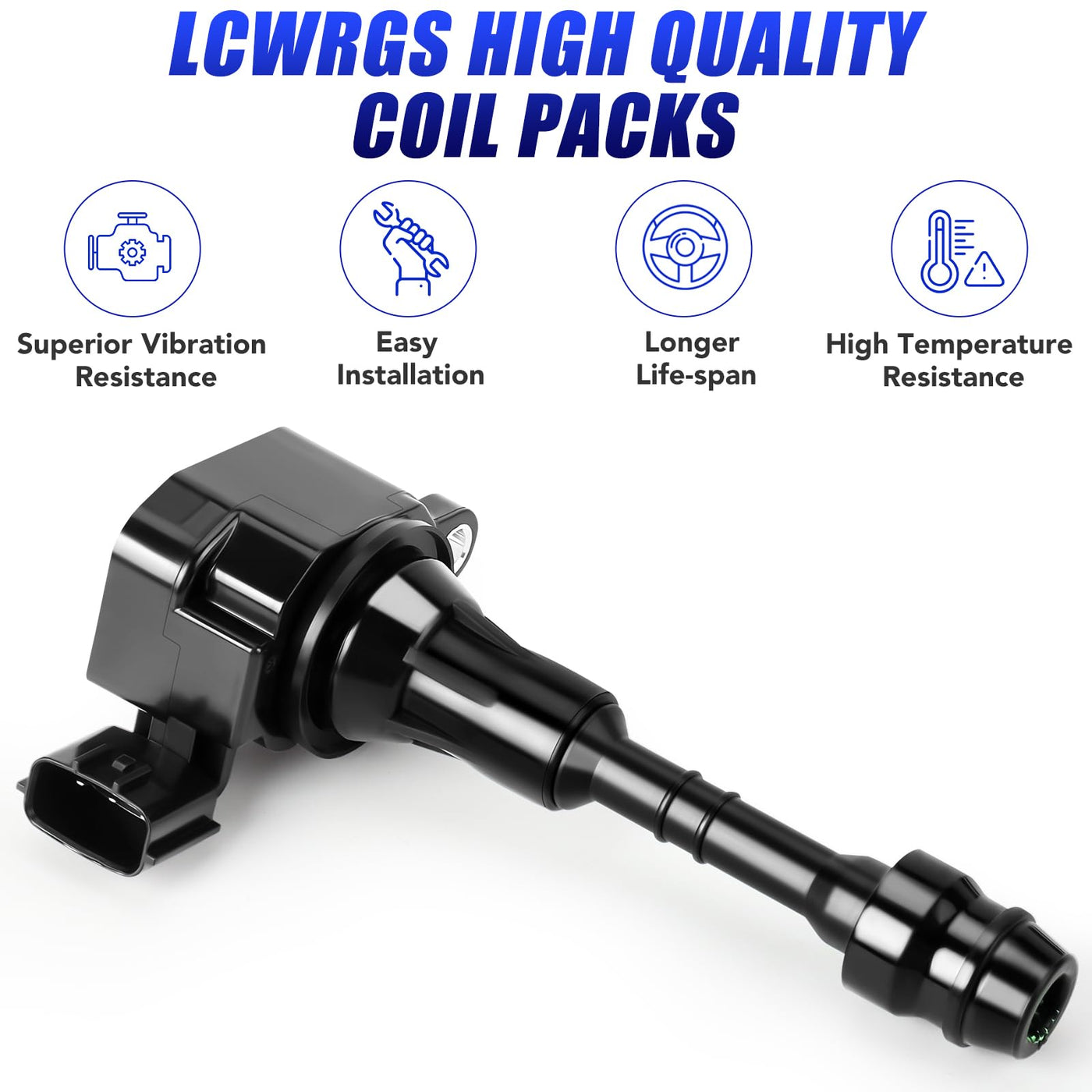 LCWRGS Set of 6 Ignition Coil Pack and Spark Plugs fits for Infiniti FX35 G35 M35 Nissan 350Z 2003 2004 2005 2006 2007 2008 3.5 V6 Replaces# UF401 4469 Compatibility: 2003-2008 Infiniti FX35 3.5L V6 2003-2007 Infiniti G35 3.5L V6 2006-2008 Infiniti M35 3.5L V6 2003- 2006 Nissan 350Z 3.5L V6 Replace Part Number: UF401 22448-AL61C 6734025 C1439 GN10246 610-58649 178-8317 5C1430 IGC0007 22448-AL61 IC521 52-1774 Replace spark Plugs part number: 4469 Package List: Set of 6 Ignition coil Pack and spark Plugs Note: This Ignition Coil and spark plugs compatible with specific vehicles, Please carefully enter your vehicle Year/Make/Model/Engine on top of the page and also confirm the part number together to match your vehicle to make sure get the the correct ignition coil packs and plugs